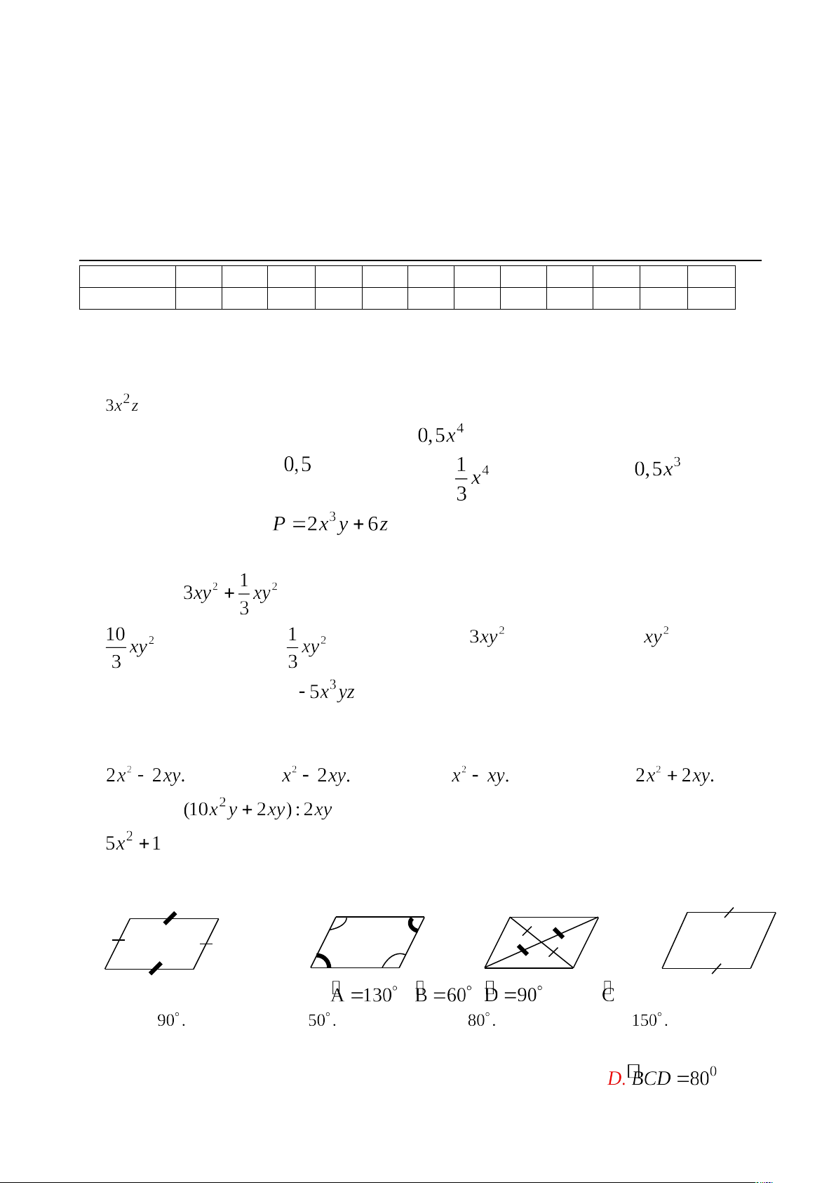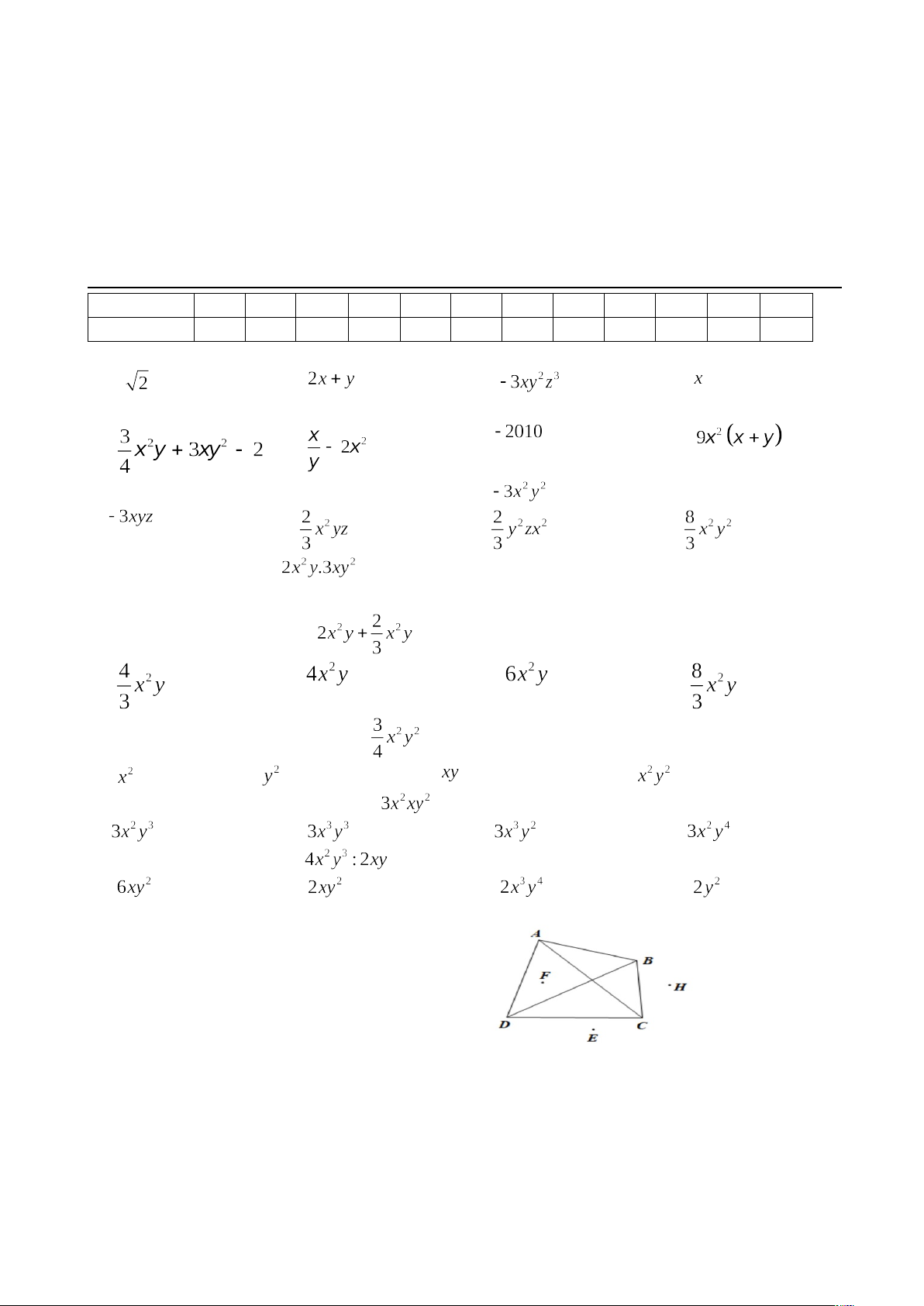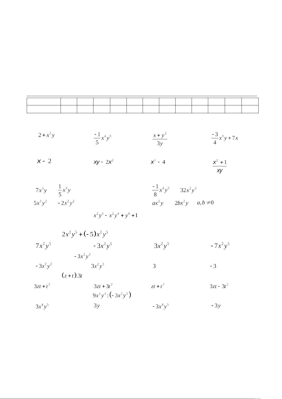 Câu 1. Trong biểu thức sau, biểu thức nào không là đơn thức?