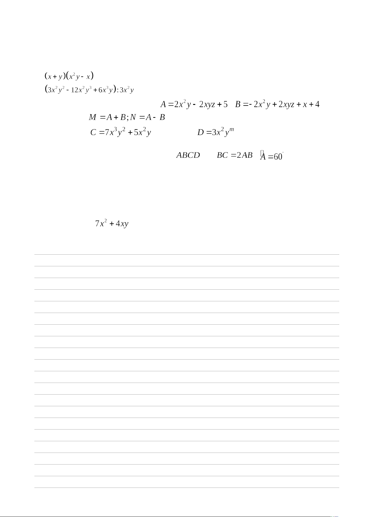 A. 3 x2y B. 2xy + 1 C. x - 2 D. x2 +7