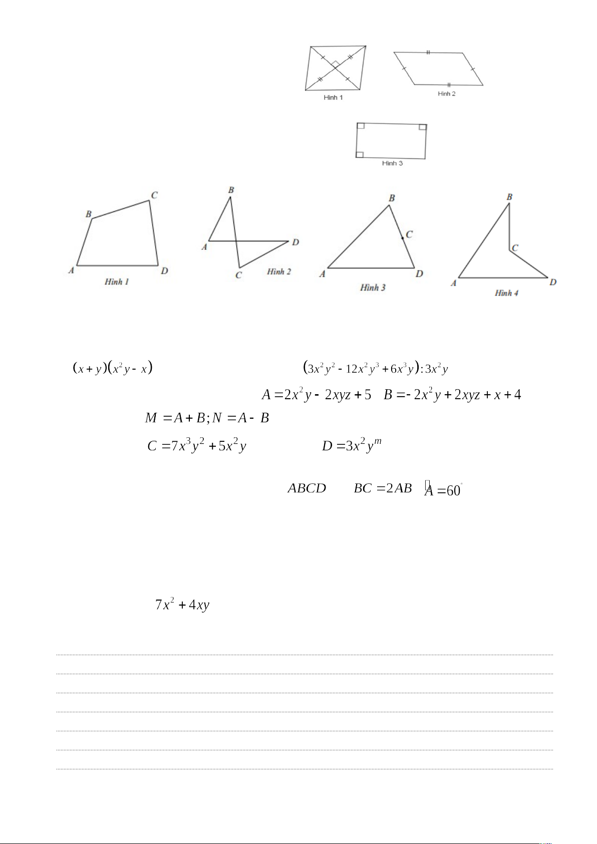 Câu 16. (1 điểm) Mảnh vườn hình chữ nhật nhà An có chiều dài là 2xy, tổng chiều dài