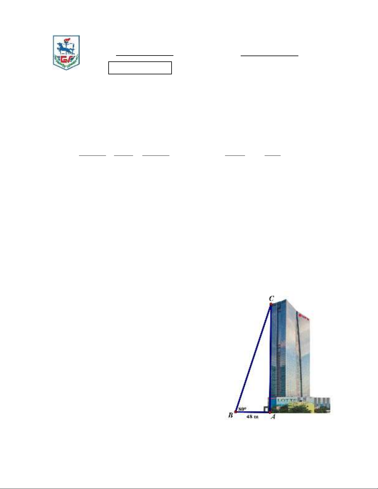 trên mặt đất dài 48m. Hỏi tòa nhà cao bao