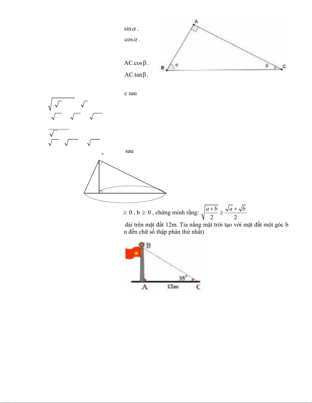 Bài 4: (1,0 điểm) Một cột cờ có bóng dài trên mặt đất 12m. Tia nắng mặt trời tạo với mặt đất một góc bằng