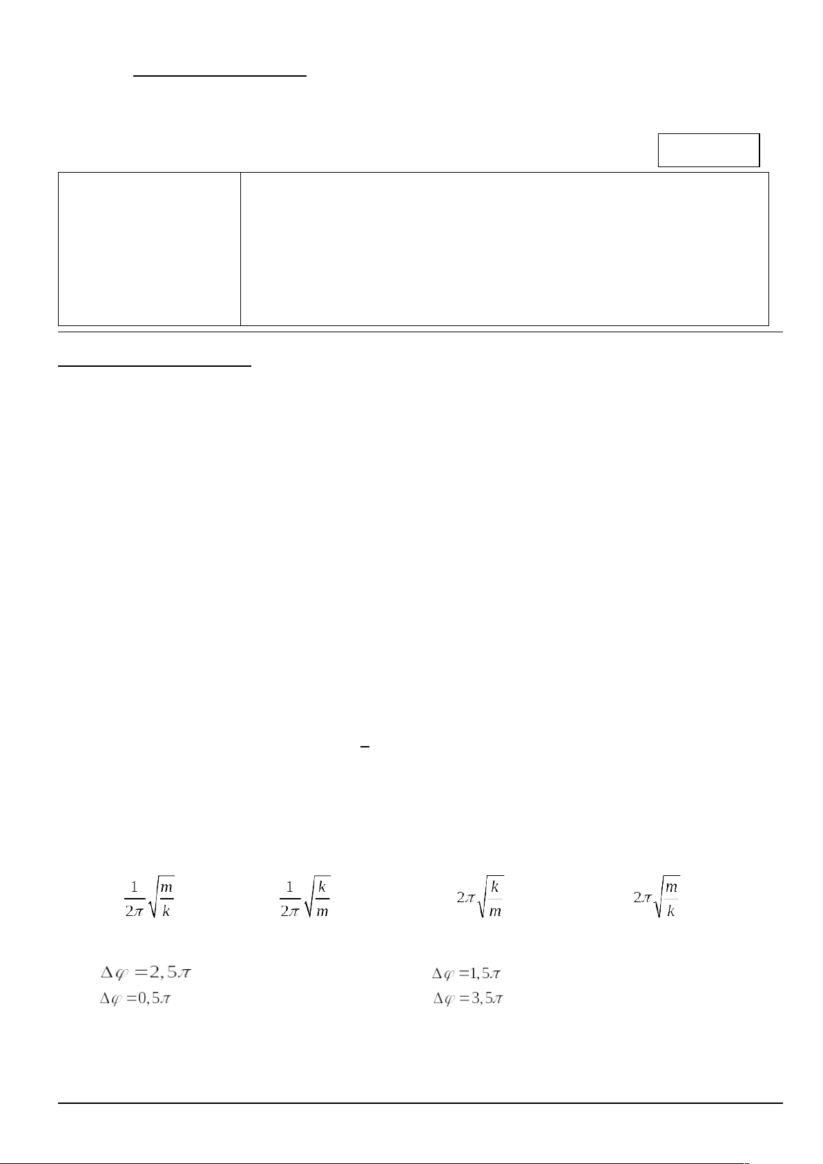 Câu 8. Biểu thức nào sau đây là tần số dao động của con lắc lò xo ?
