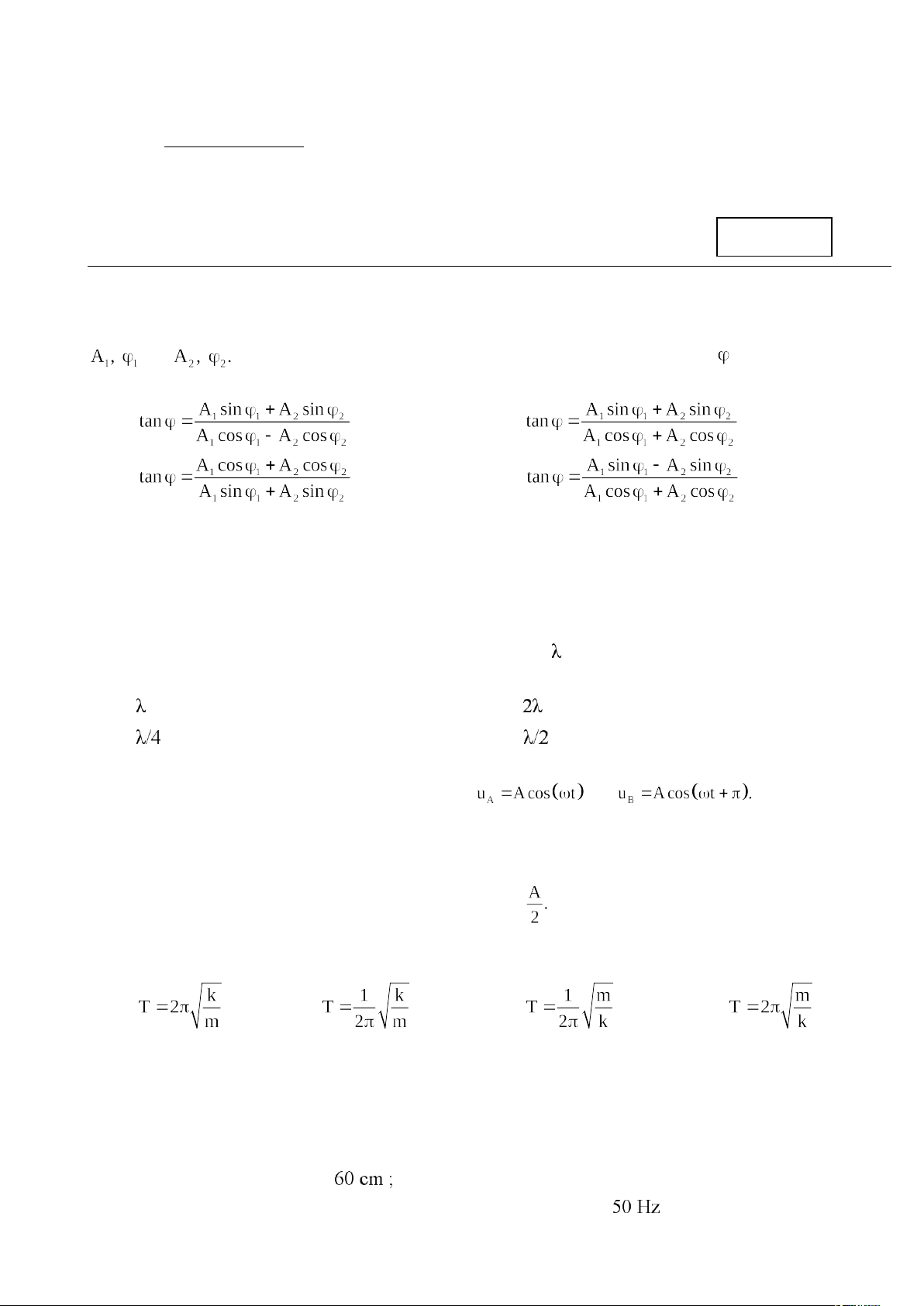Câu 1: Hai dao động điều hoà cùng phương, cùng tần số có biên độ và pha ban đầu lần lượt là