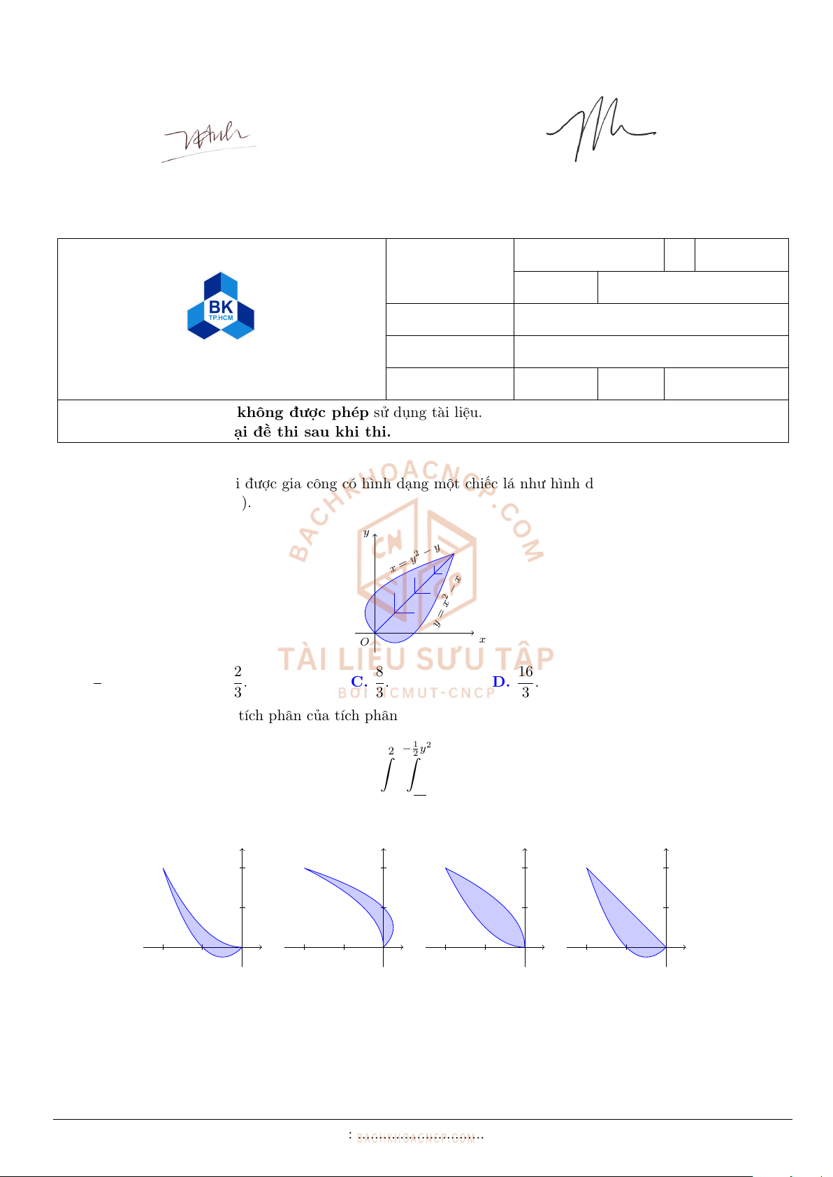 Câu 1. Một mảnh kim loại được gia công có hình dạng một chiếc lá như hình dưới. Hãy tính diện tích lá kim