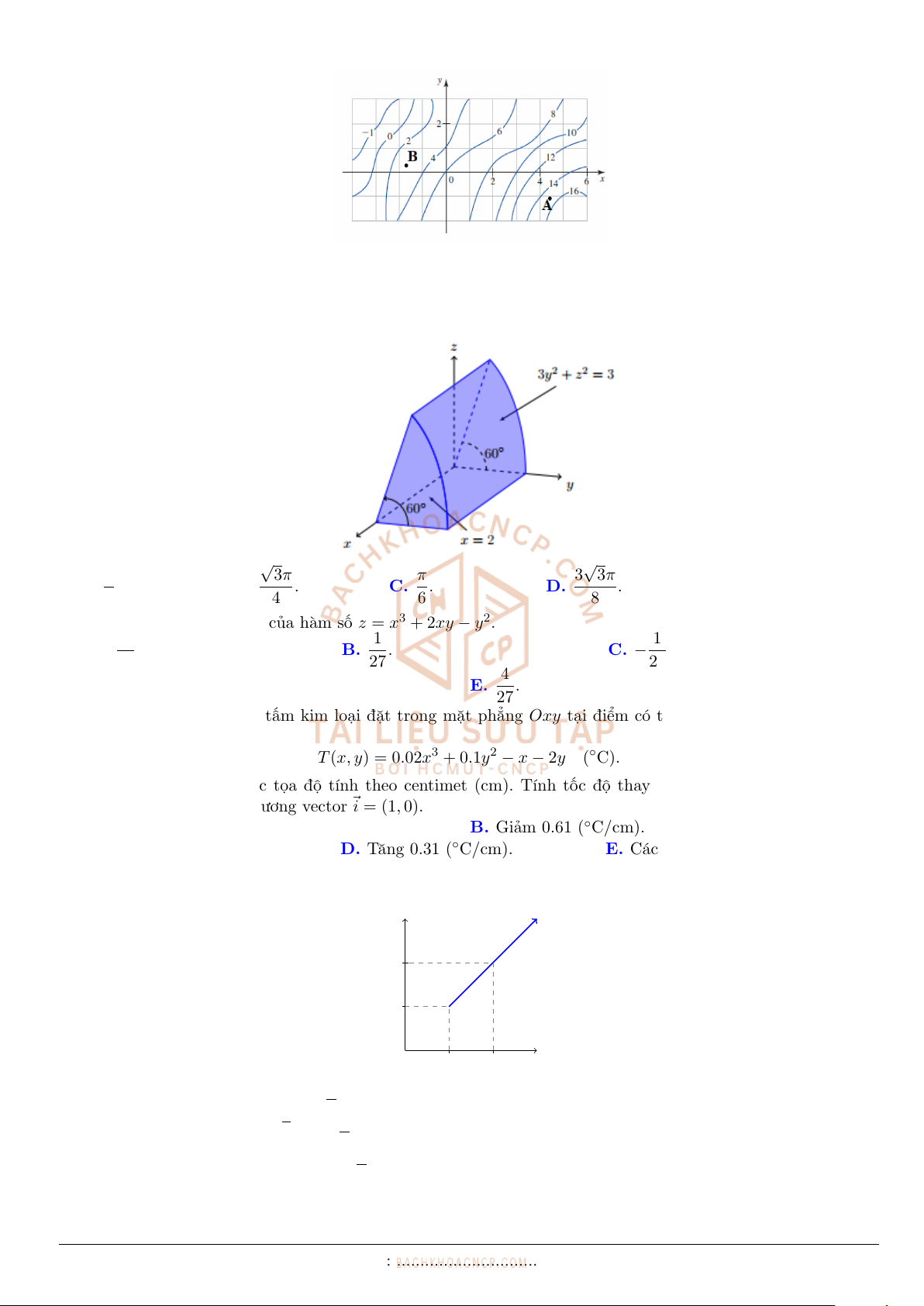 Câu 6. Nhiệt độ trên một tấm kim loại đặt trong mặt phẳng Oxy tại điểm có tọa độ (x, y)được cho bởi mô