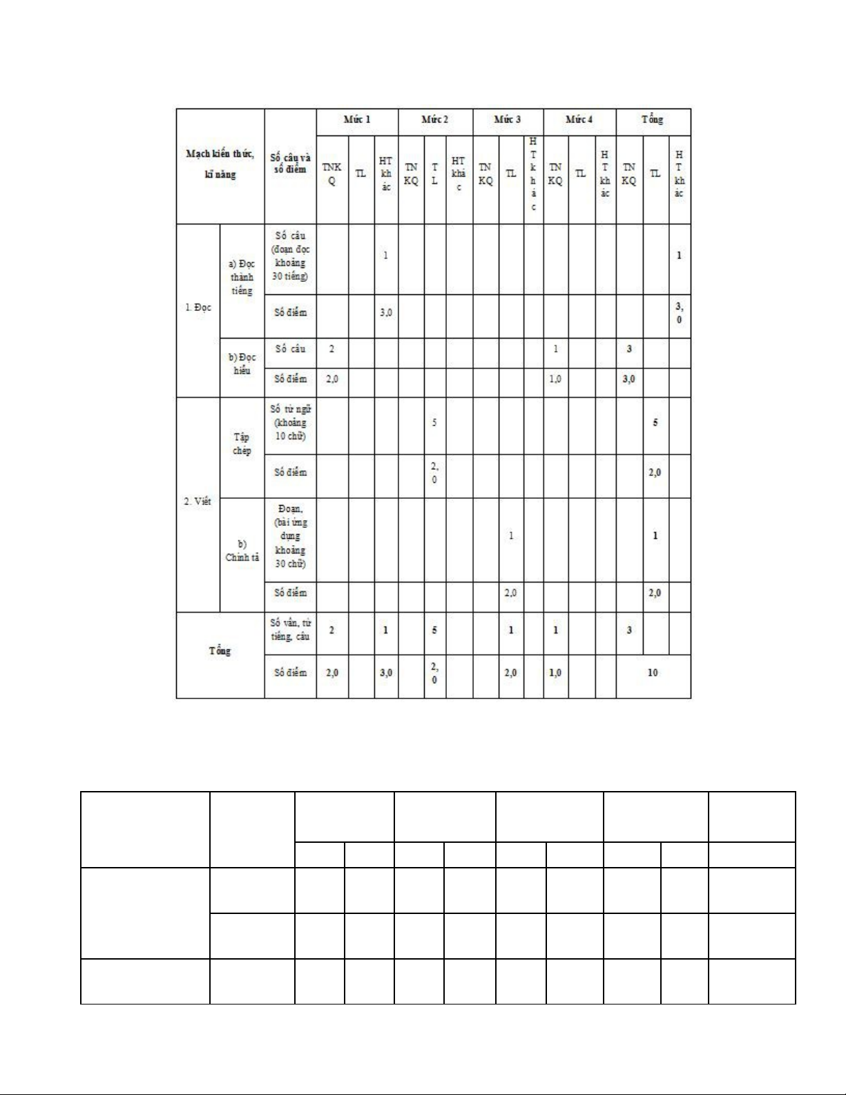 B ng ma tr n đ thi gi a h c kì 2 môn Ti ng Vi t l p 1ả ậ ề ữ ọ ế ệ ớ