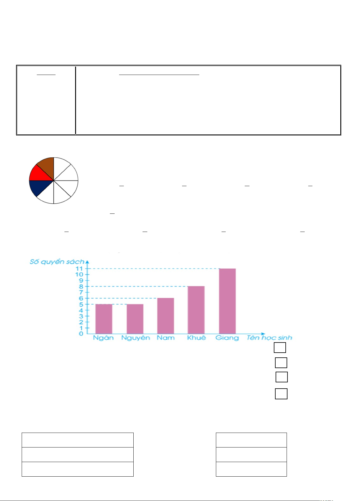 Câu 1.DPhân số chỉ số phần đã tô màu trong hình vẽ là: (0,5 điểm)