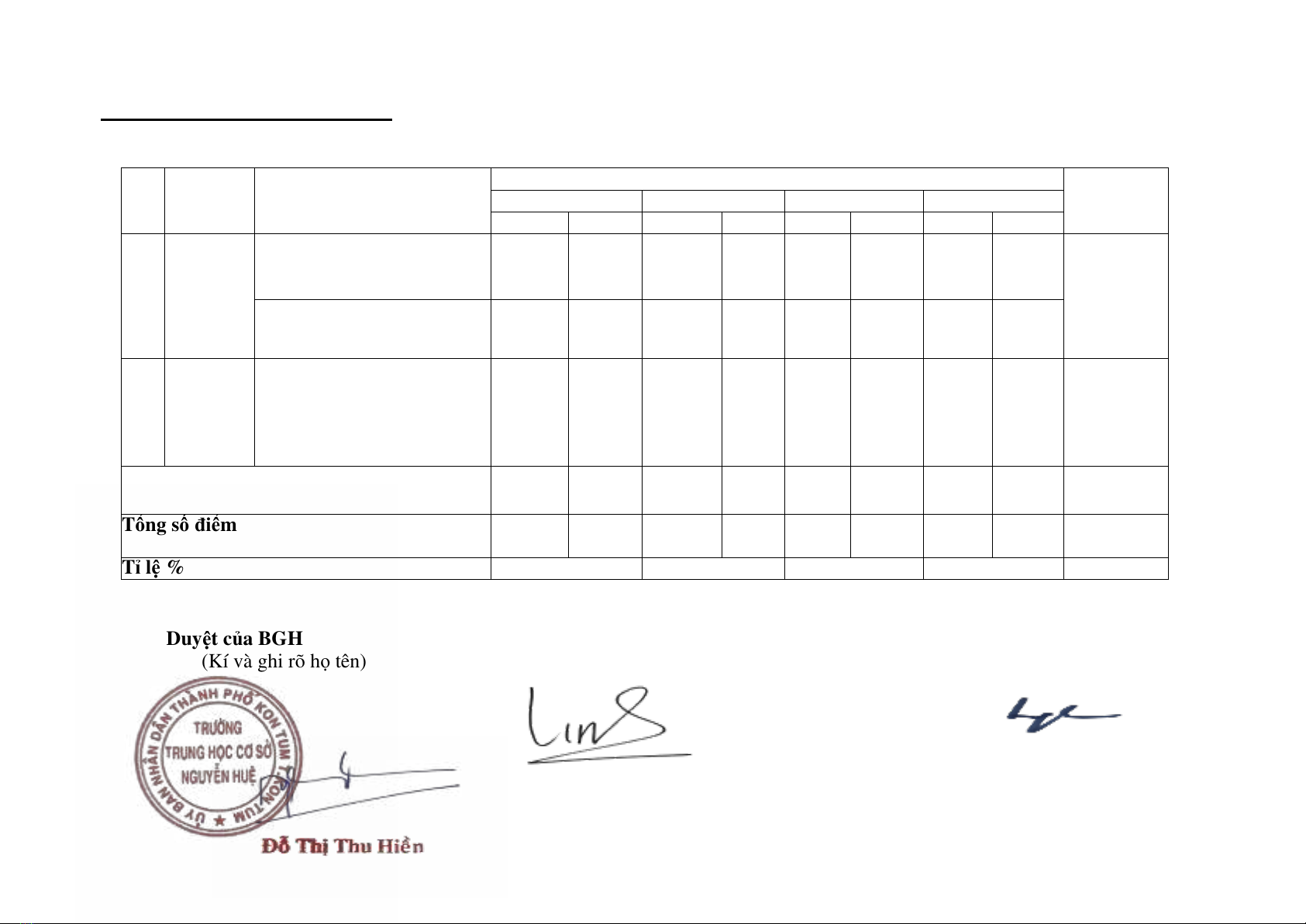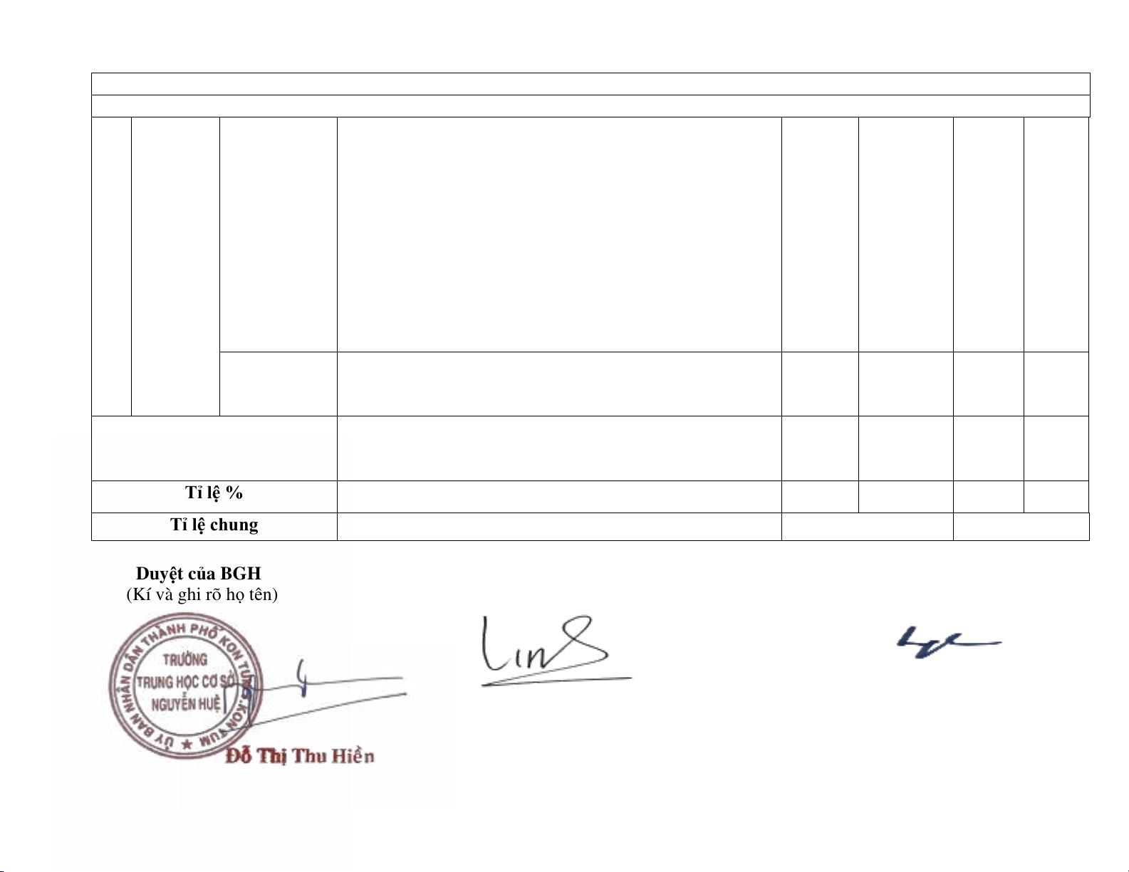 Duyệt của BGH Duyệt của TTCM Giáo viên lập bảng