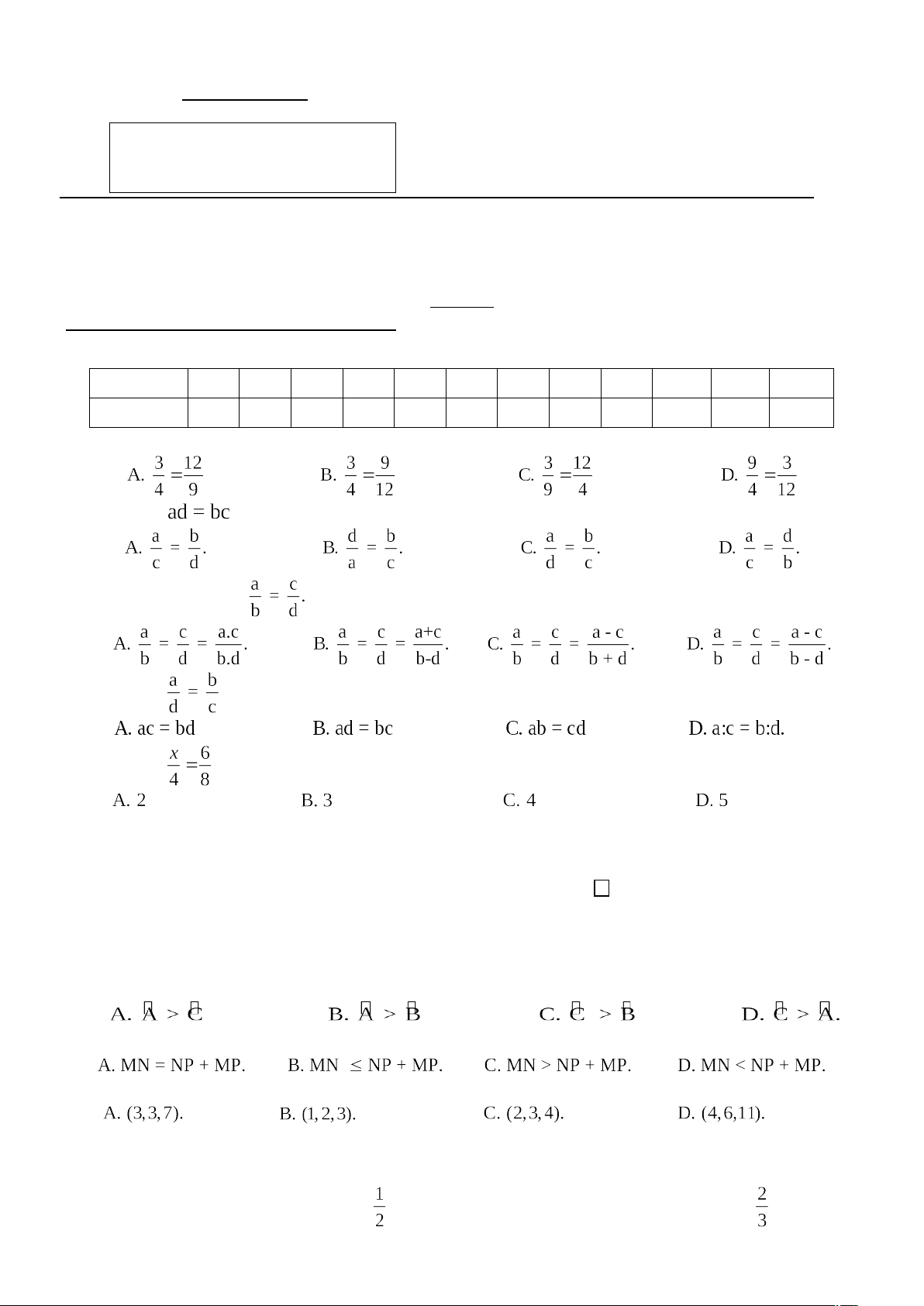 Câu 1. Cho hai tỉ số 3:4 và 9:12. Khi đó ta có tỉ lệ thức