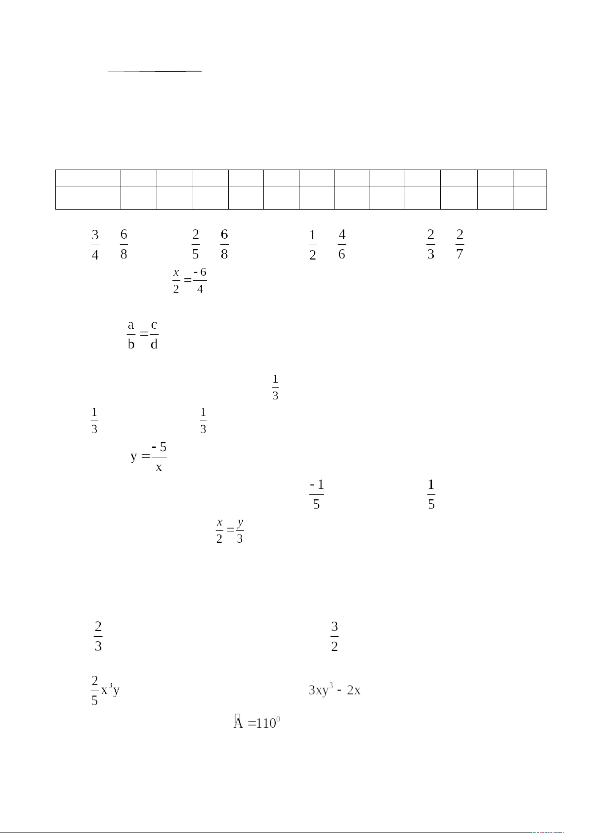 Câu 5: Cho thì x tỉ lệ nghịch với y theo hệ số tỉ lệ là: