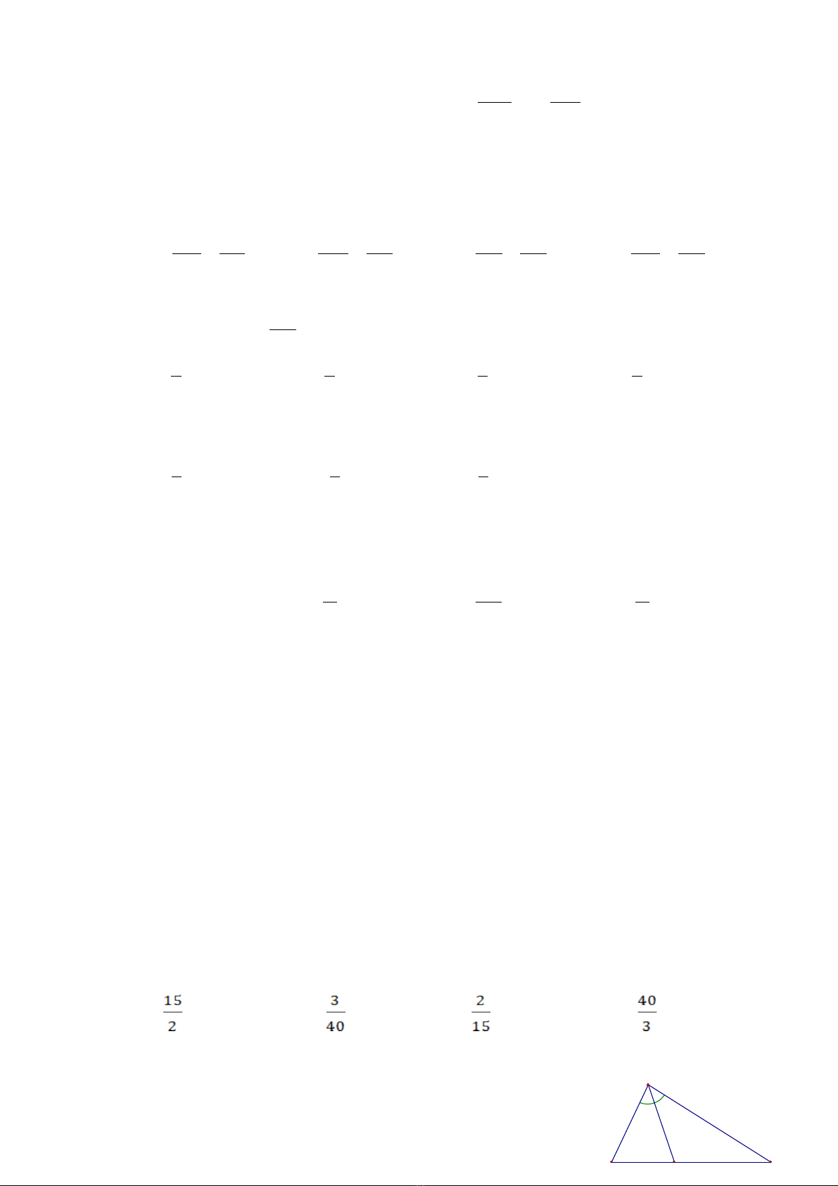 Câu 14: Cho AB = 3cm, CD = 40cm. Tỉ số của hai đoạn thẳng AB và CD bằng?