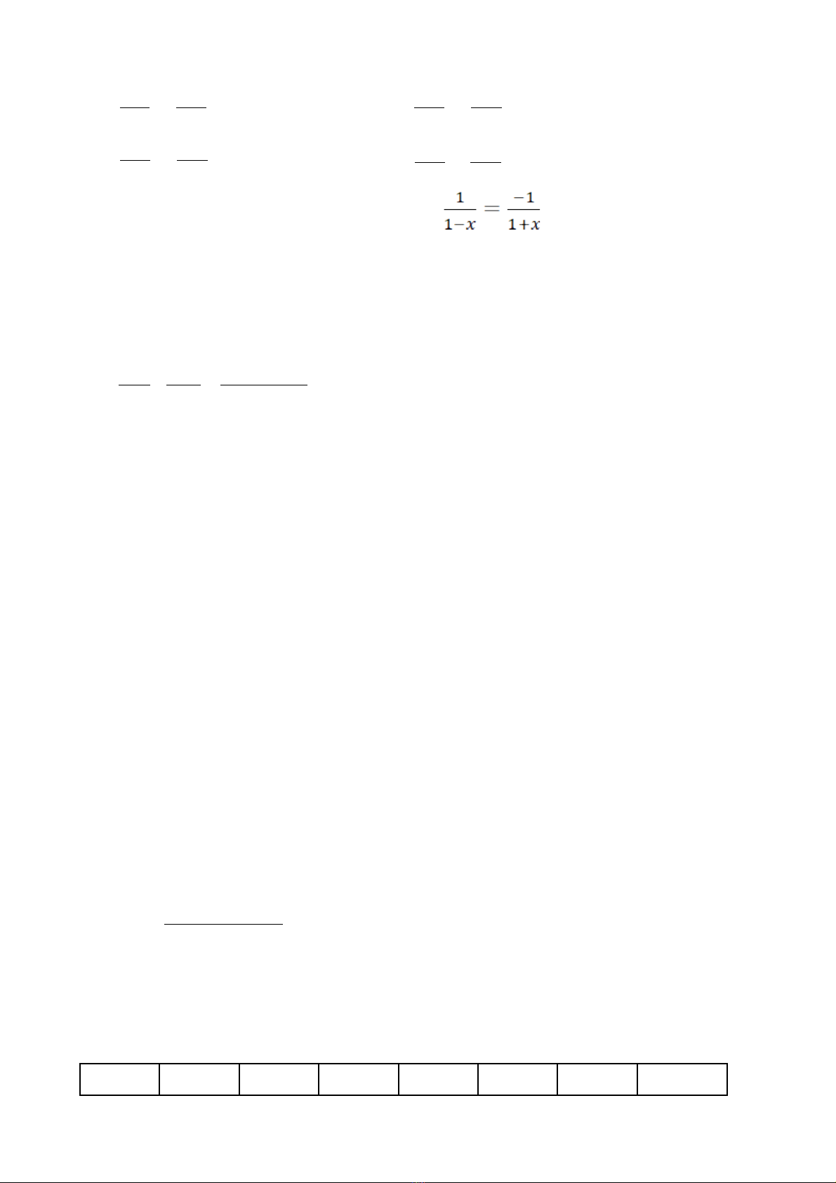 Câu 10: x = 1 là nghiệm của phương trình nào trong các phương trình dưới đây?