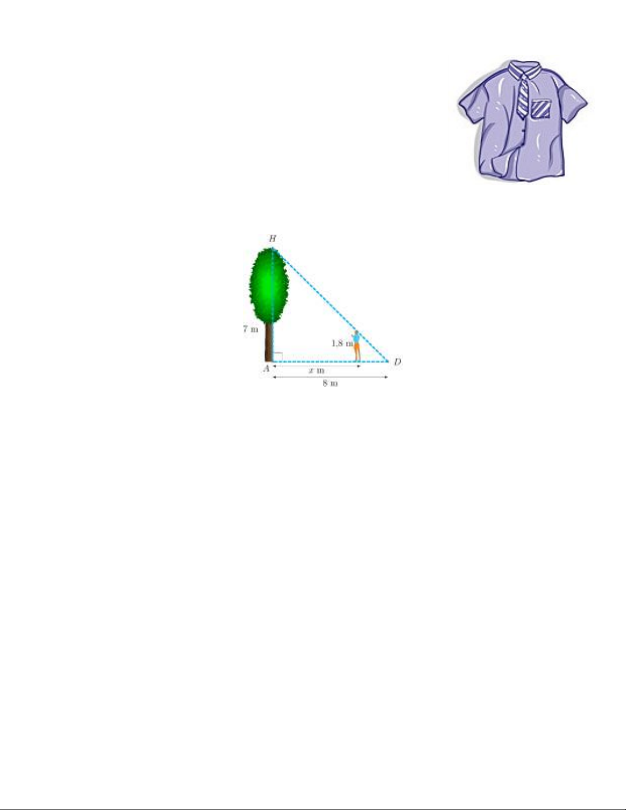 Bài 4 (0,75 điểm) Một cây xanh cao 7m, đổ bóng nắng dài 8m trên