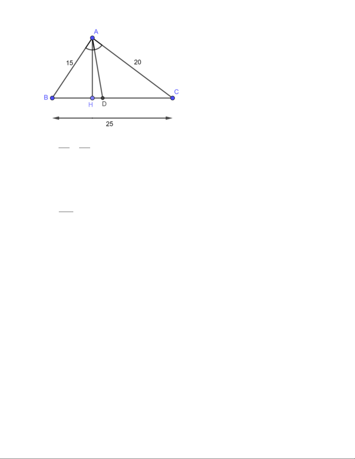 Bài 5 (2,0 điểm) Cho tam giác ABC có AB = 15cm, AC = 20cm, BC = 25cm. Đường phân
