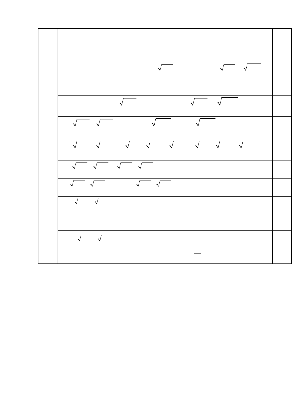 I. Trắc nghiệm (2 điểm) Mỗi ý chọn đúng đáp án được 0,25 điểm.