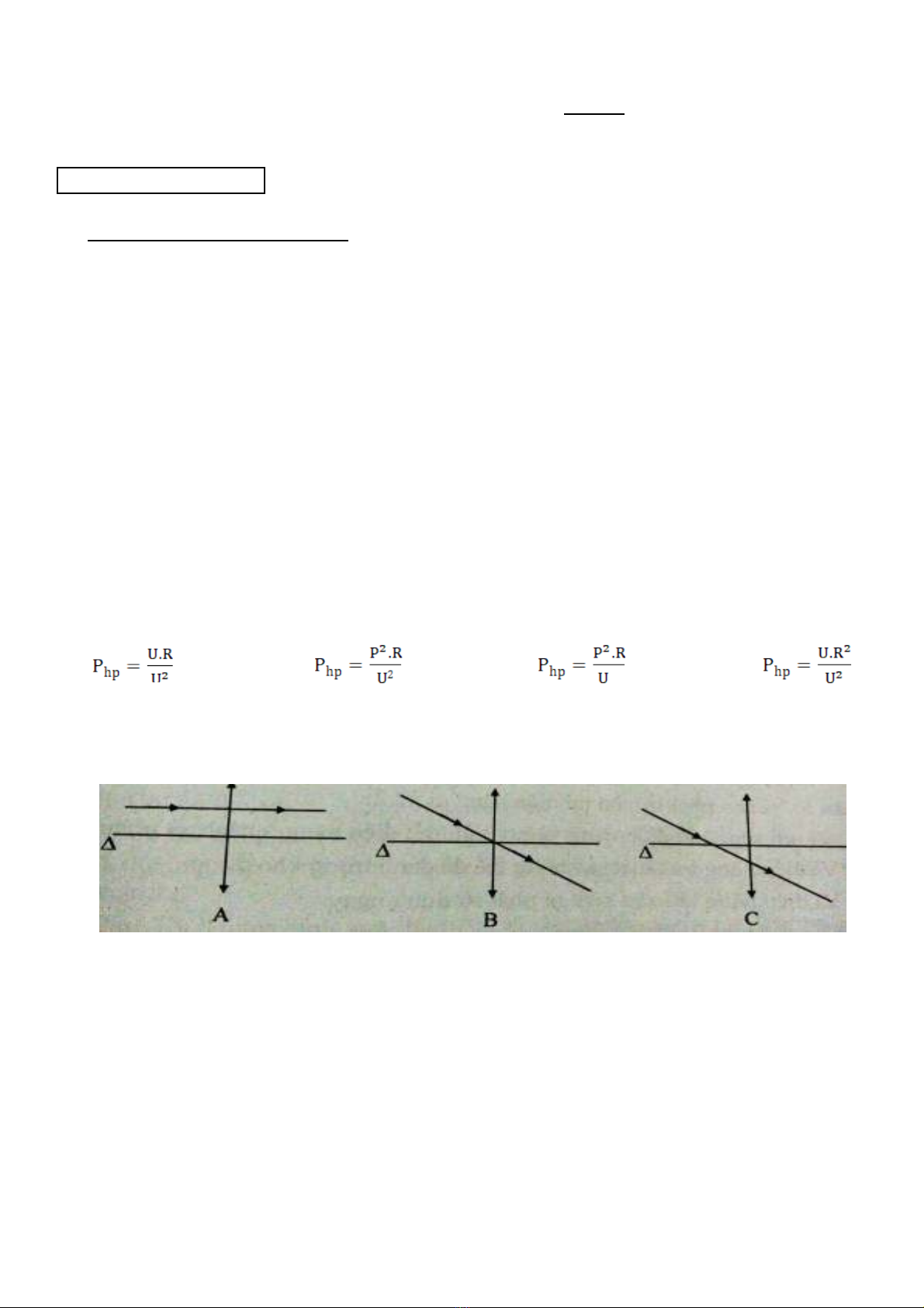 Câu 4. Khi truyền tải một công suất điện P bằng một dây có điện trở R và đặt vào hai đầu