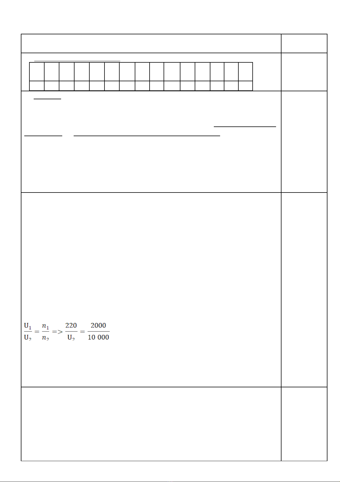 Câu 17. (2 điểm) Một máy biến thế có số vòng cuộn sơ cấp là 2000 vòng, số vòng cuộn thứ