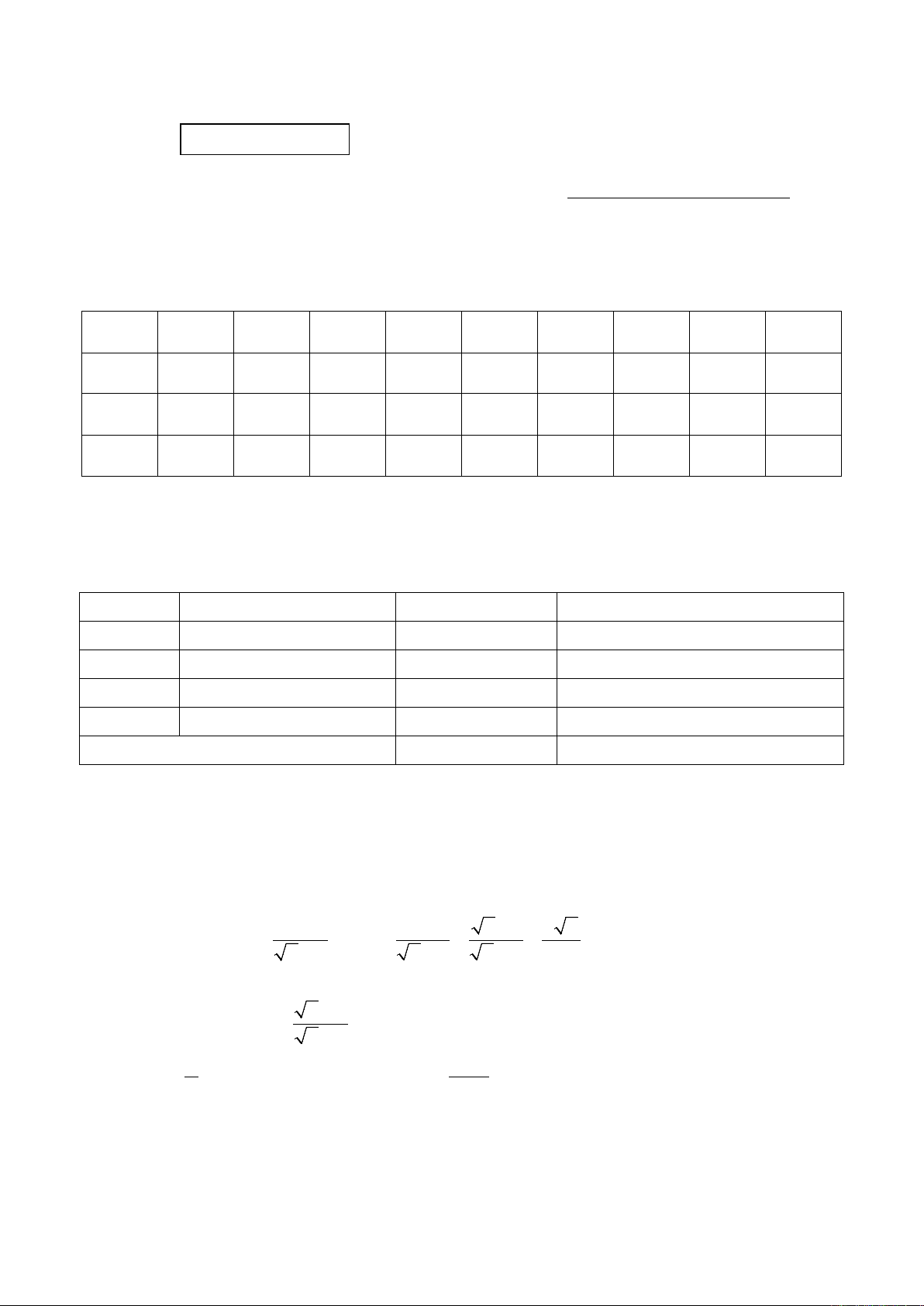 Họ và tên học sinh:...................................................................................Lớp: 9A ....SBD:…