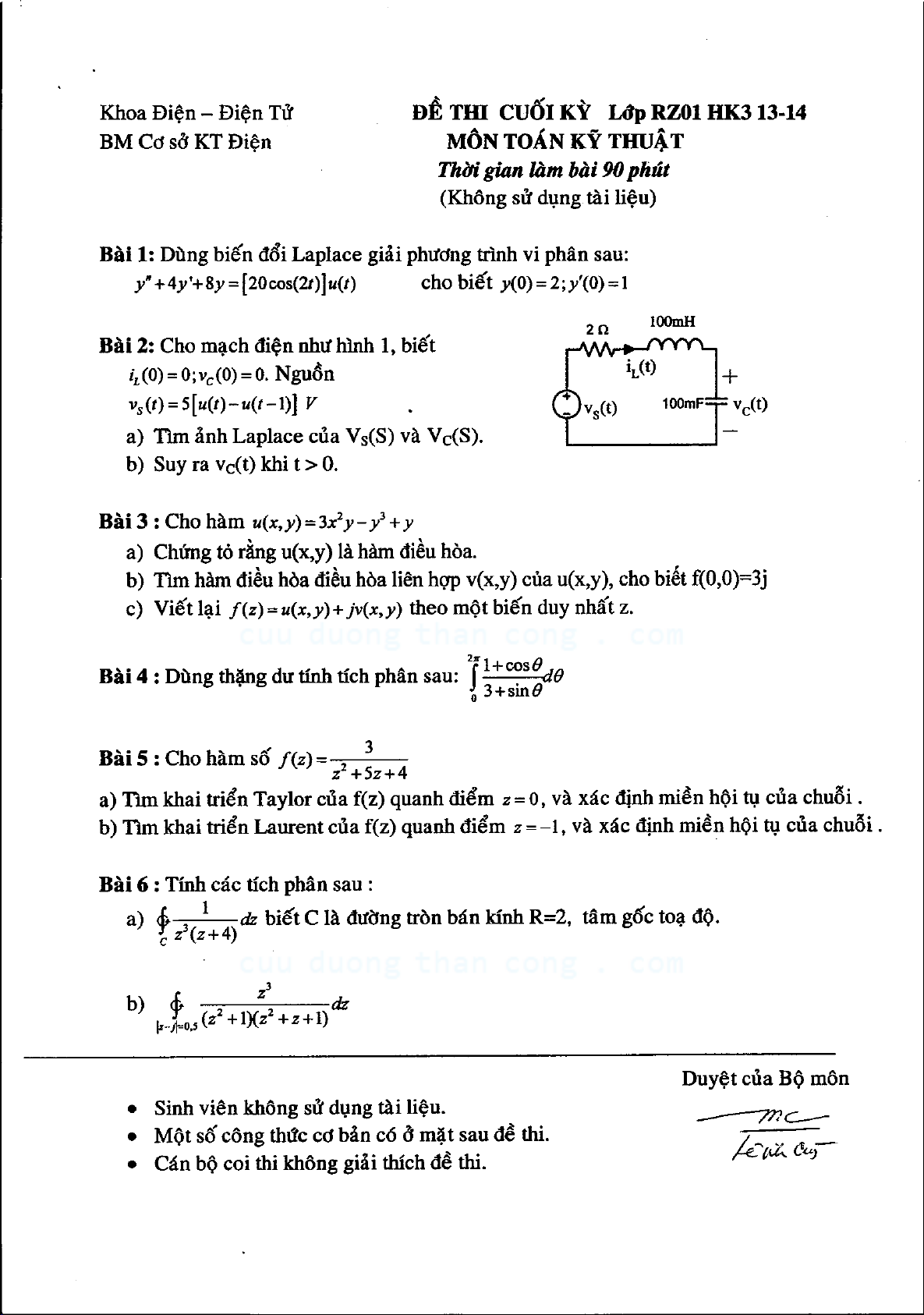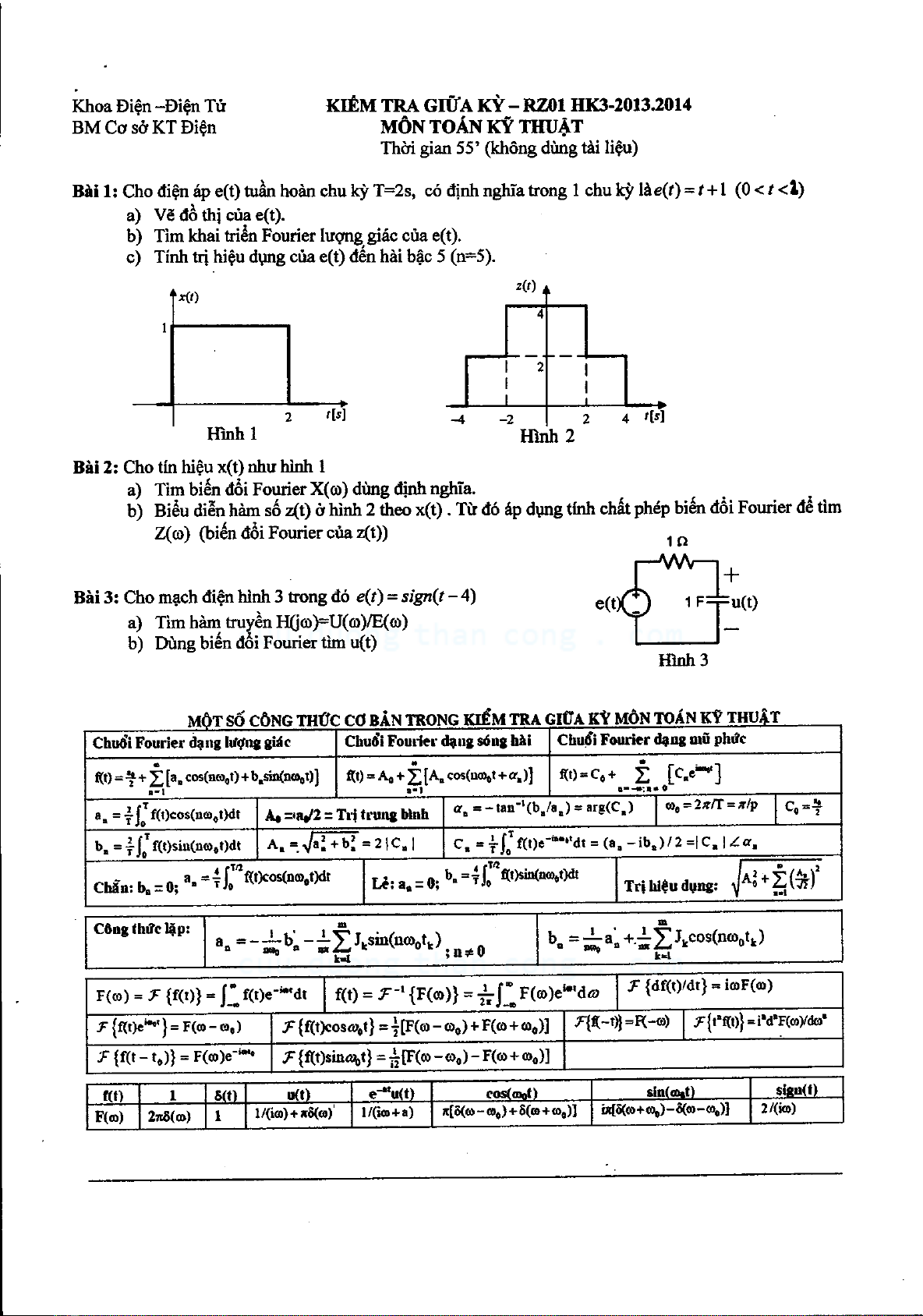 Đề thi giữa học kỳ 3 môn Toán kỹ thuật giúp cho các bạn sinh viên nắm bắt được cấu trúc đề thi, dạng đề thi chính để có kế hoạch ôn thi một cách tốt hơn. Tài liệu hữu ích cho các các bạn sinh viên đang theo học chuyên ngành Điện – Điện tử và những ai quan tâm đến môn học này dùng làm tài liệu tham khảo.