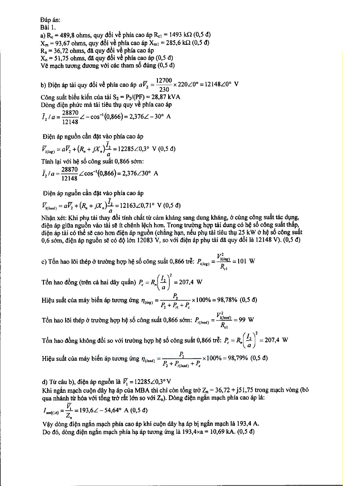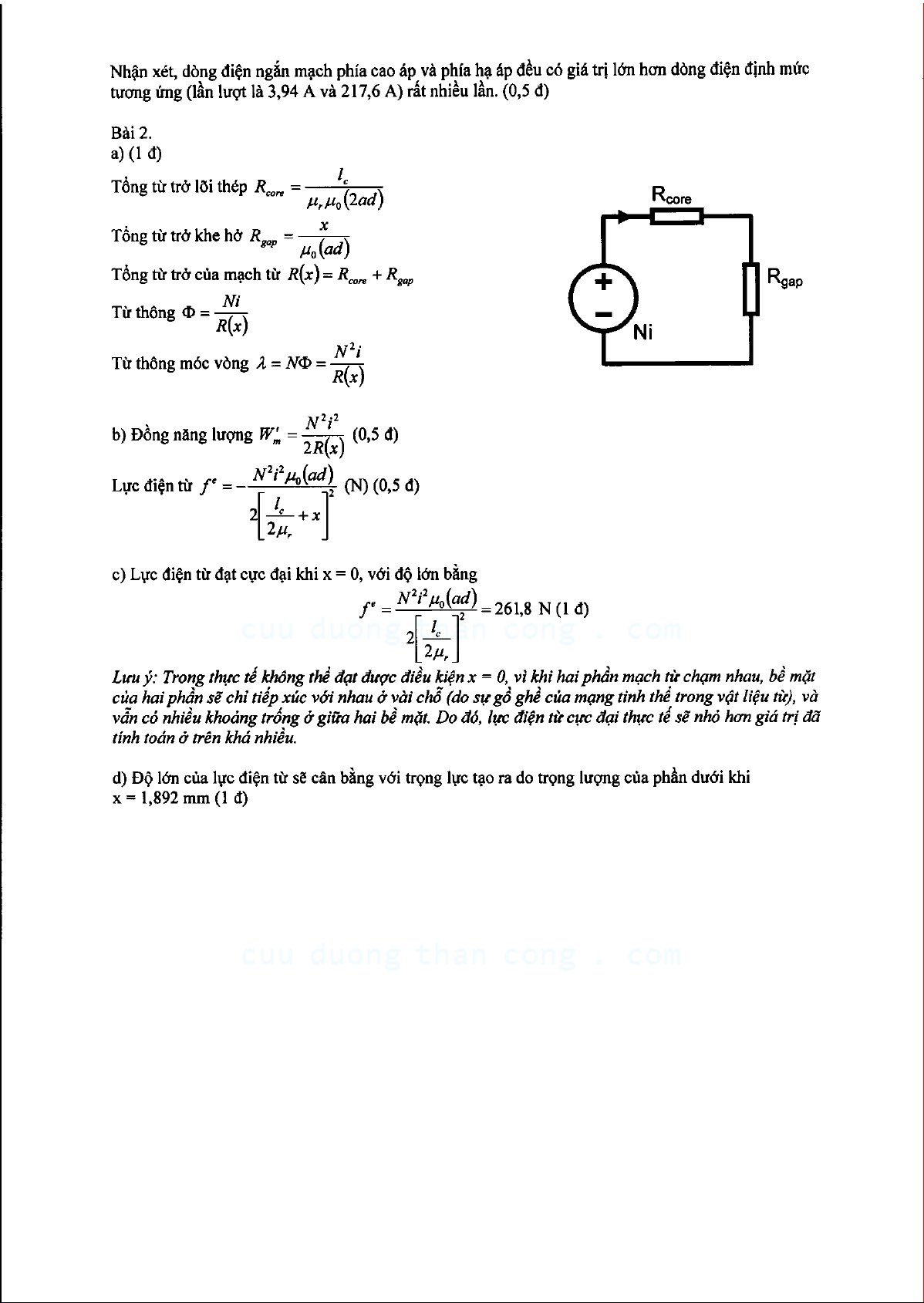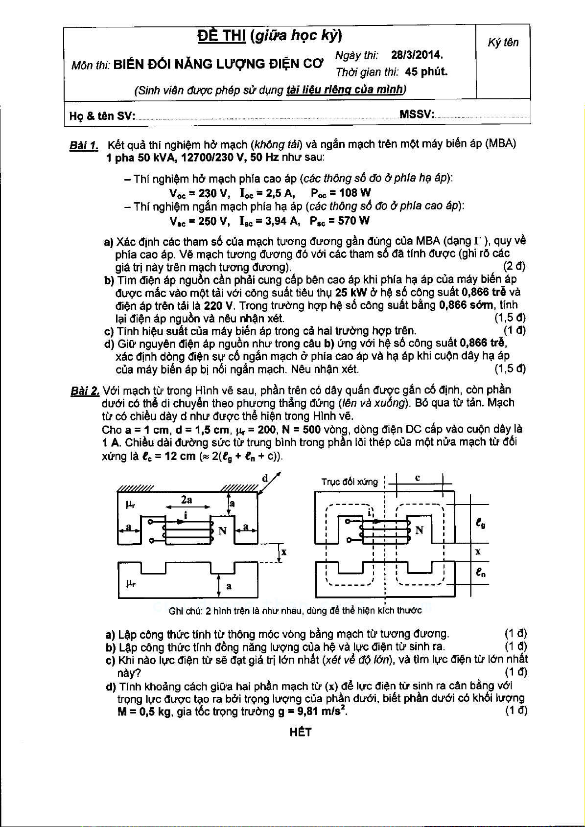 Đề thi giữa học kỳ môn Biến đổi năng lượng điện cơ