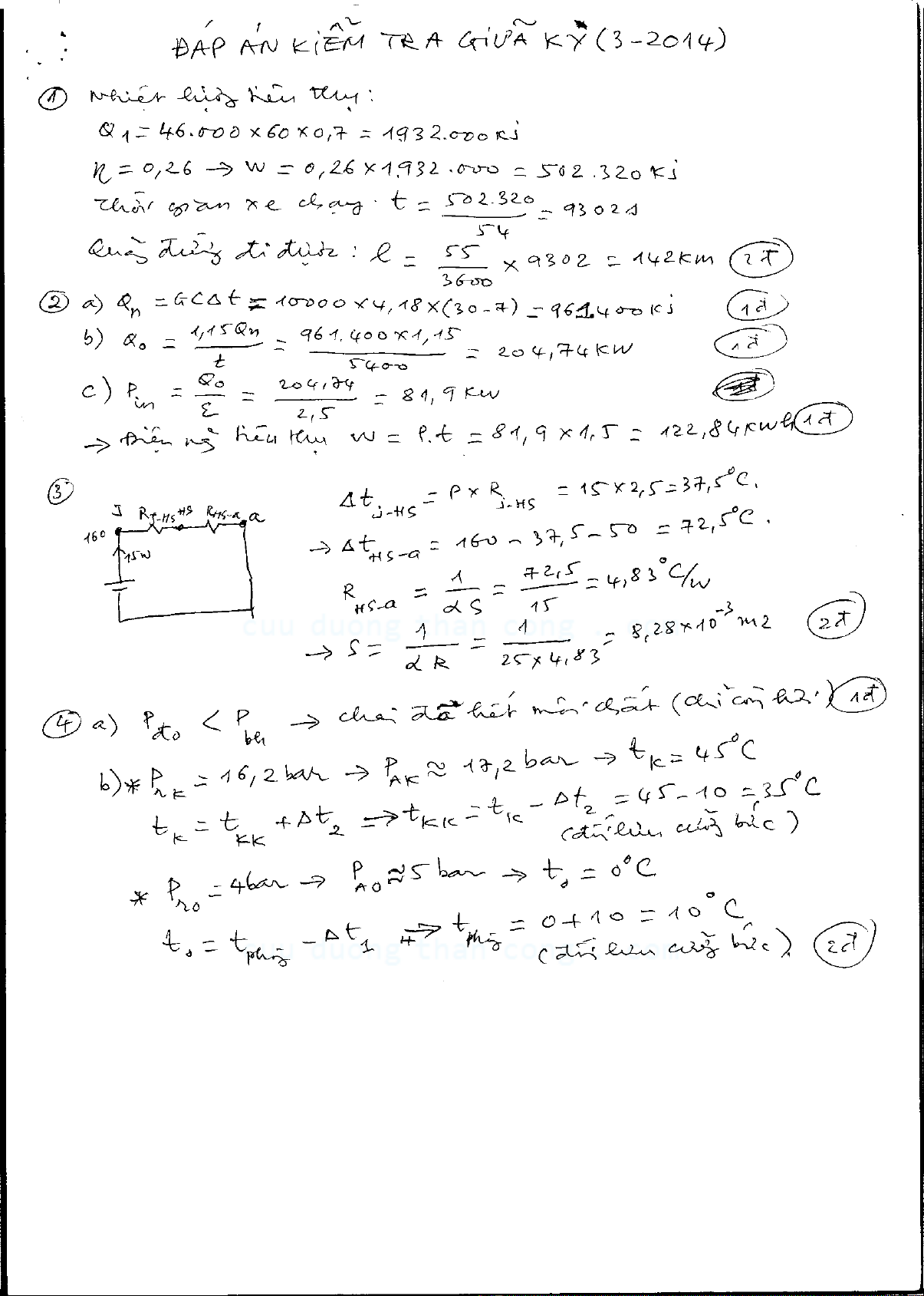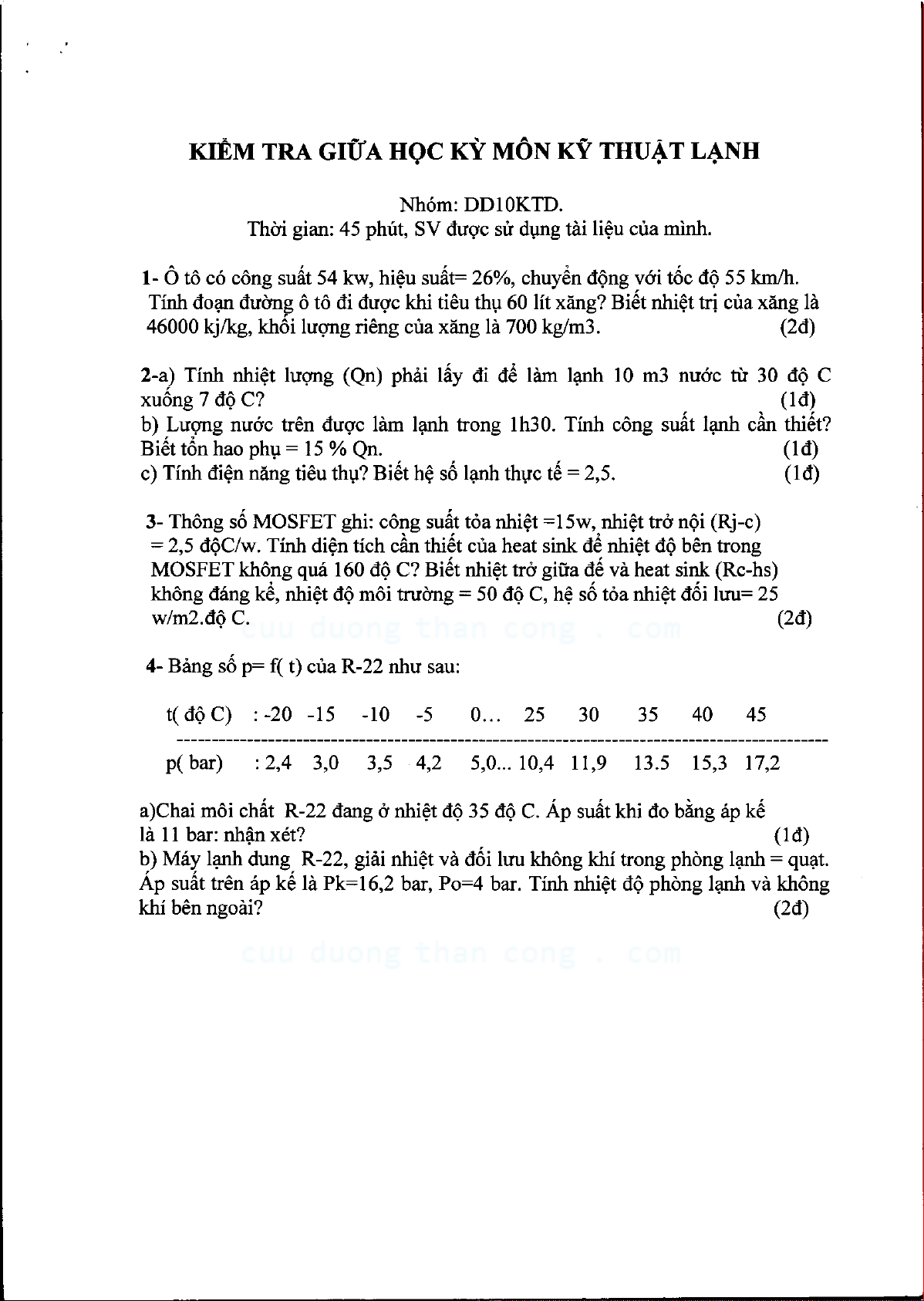 Đề thi giữa học kỳ môn Kỹ thuật lạnh