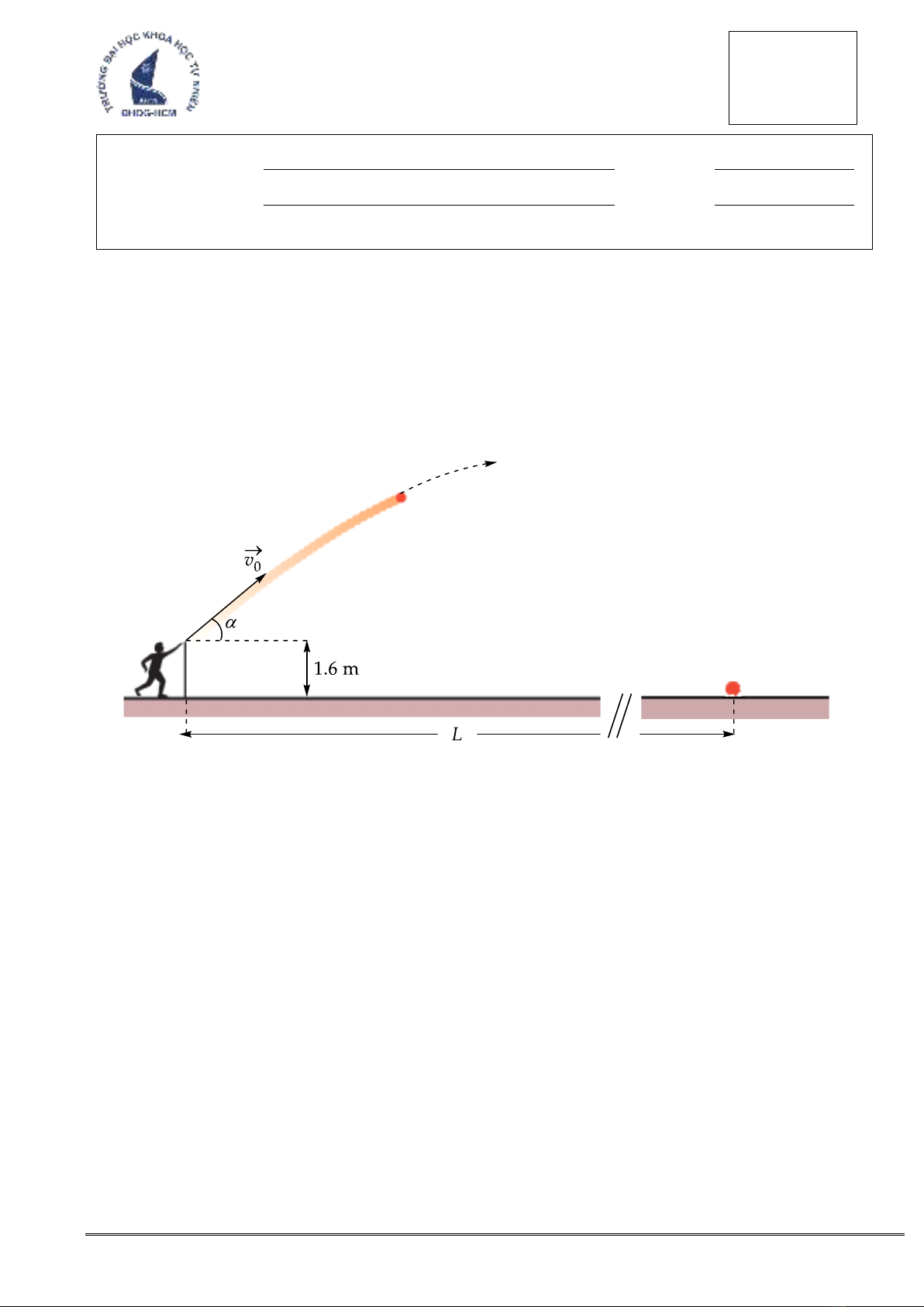 VĐV tại độ cao 1.6 m với vận tốc đầu 𝑣0 có vector hợp với phương ngang một góc