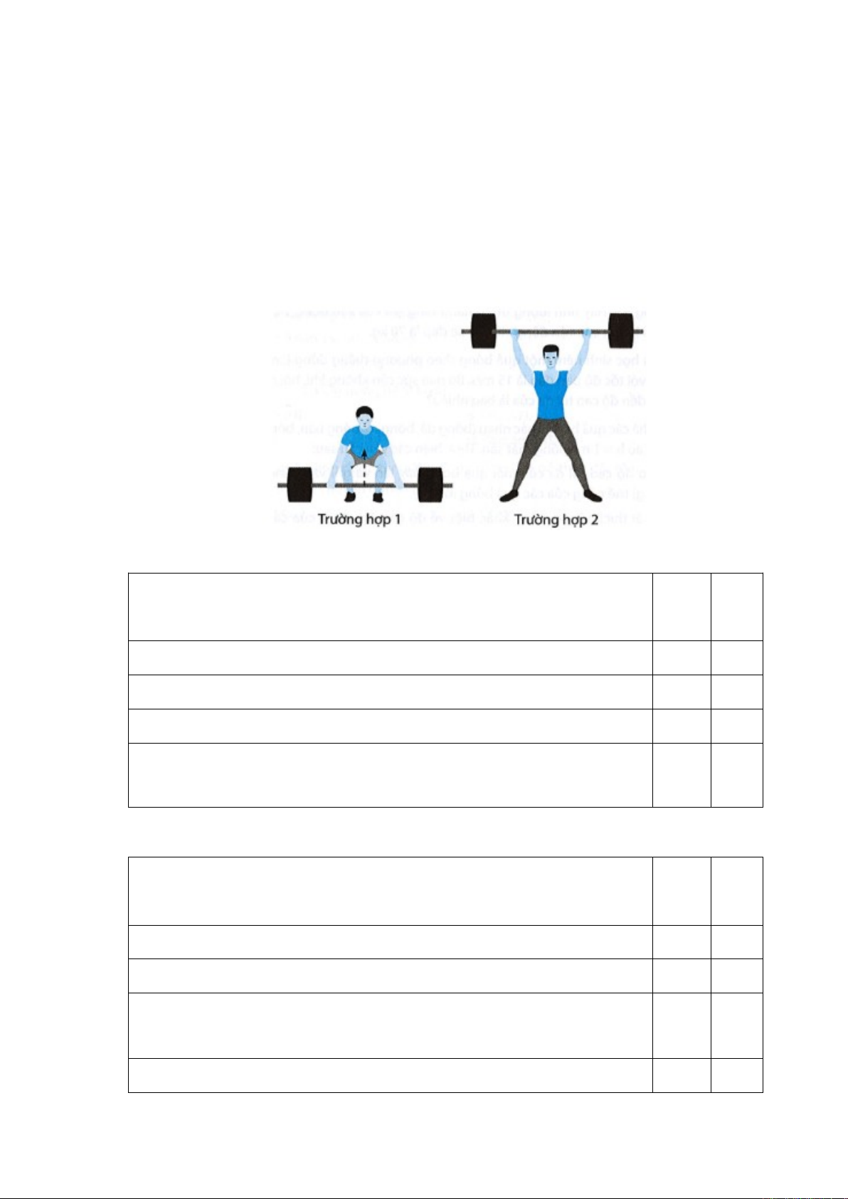 Câu 1. Hình dưới đây mô tả lực sĩ A nhấc tạ từ mặt đất lên trên (trường hợp 1) và