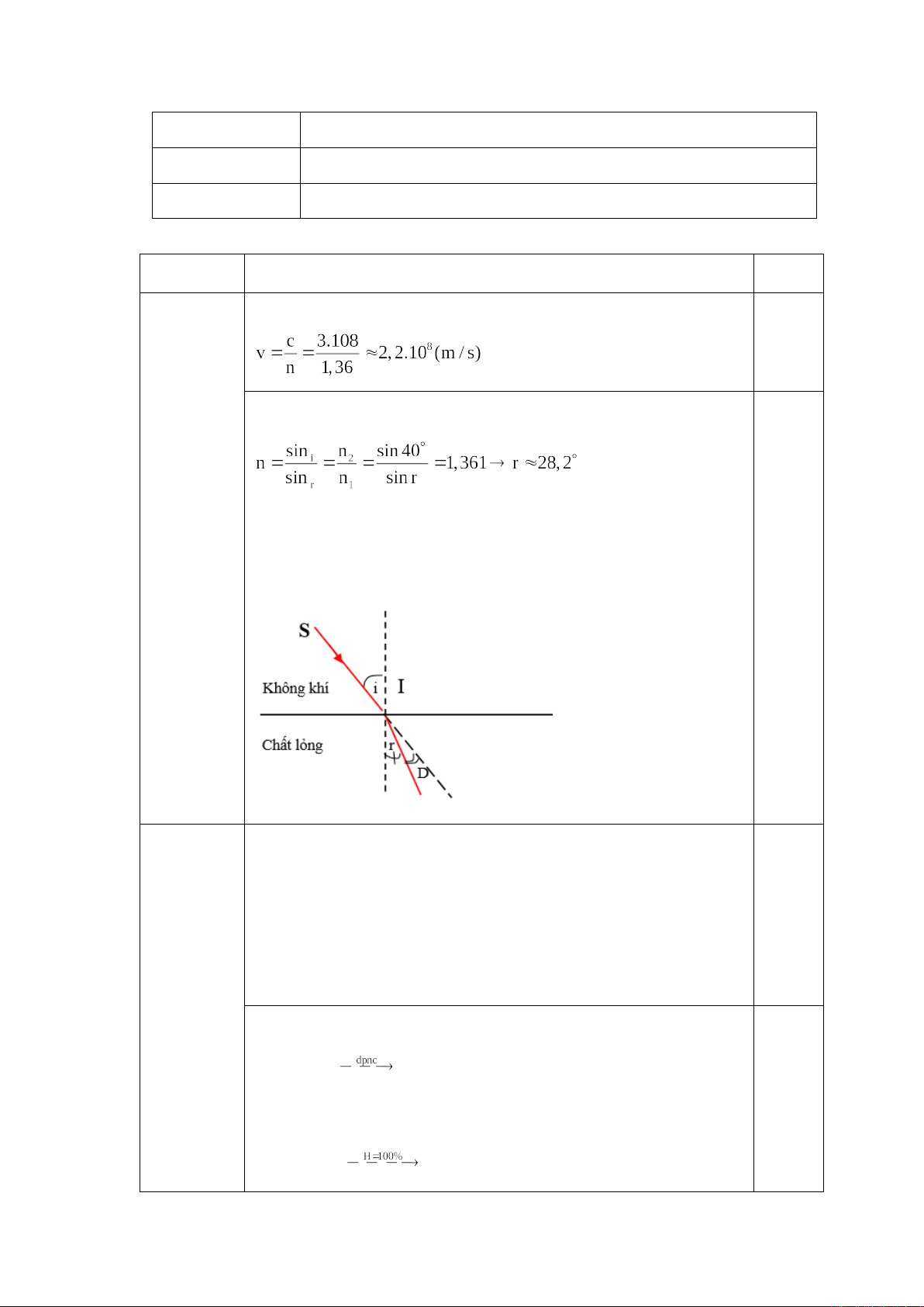 biết chất lỏng có chiết suất 1,36. (Kết quả các phép tính trung gian không được làm