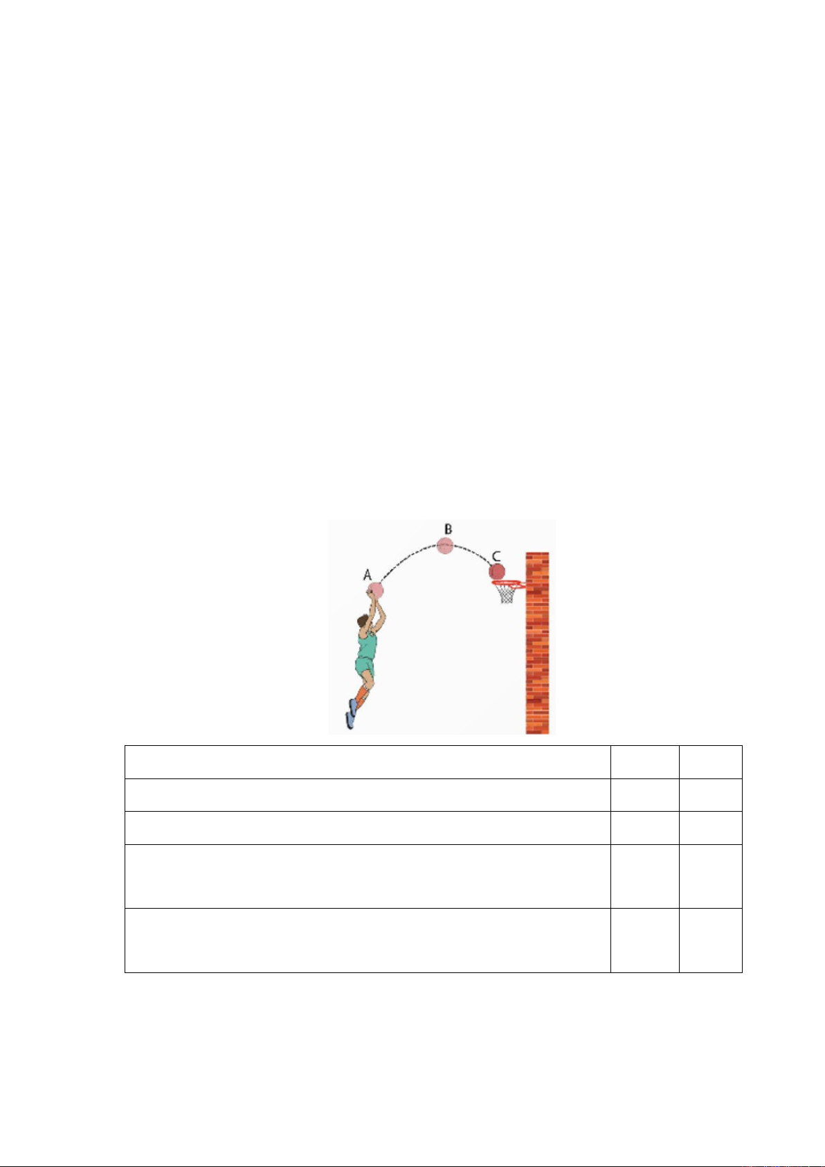 Câu 1. Trong quá trình chuyển động từ tay bạn học sinh đến khi rơi vào rổ, xét tính