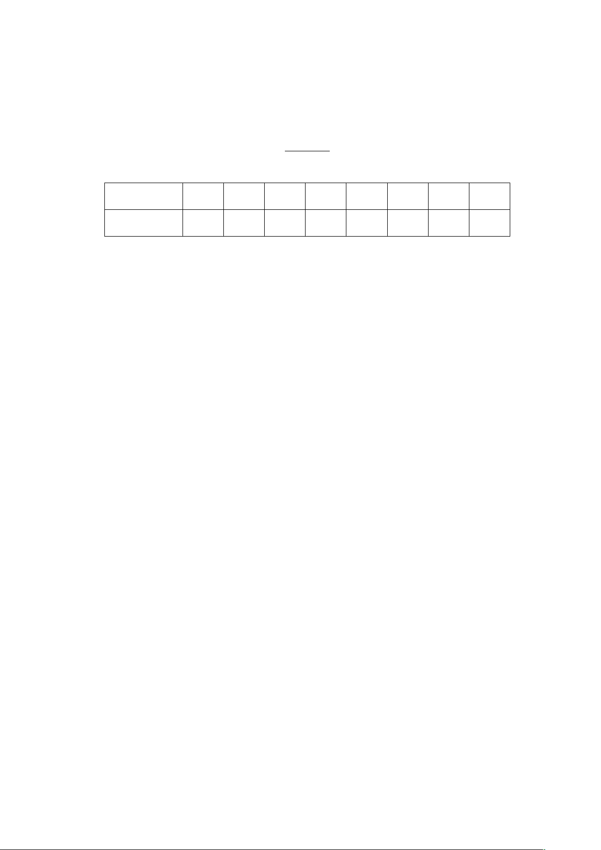 I. PHẦN TRẮC NGHIỆM: (2,0 điểm) ) Đọc từ câu 1 đến câu 8 và lựa chọn đáp án đúng