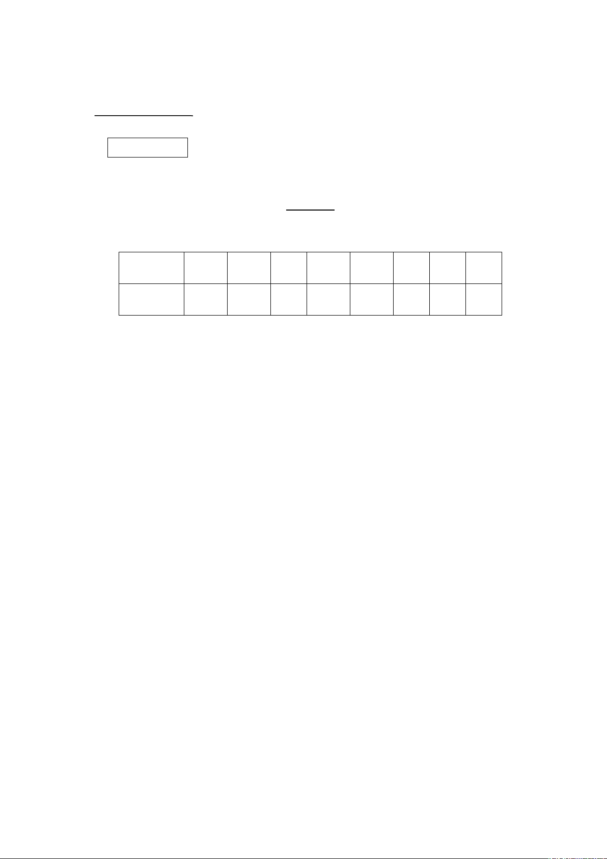 Họ và tên học sinh: .................................................... Lớp: .................Điểm: ..........
