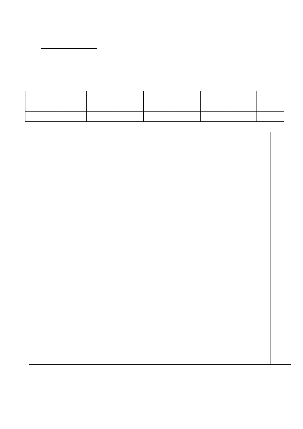 - Lựa chọn đúng mỗi ý được 0,25 điểm:
