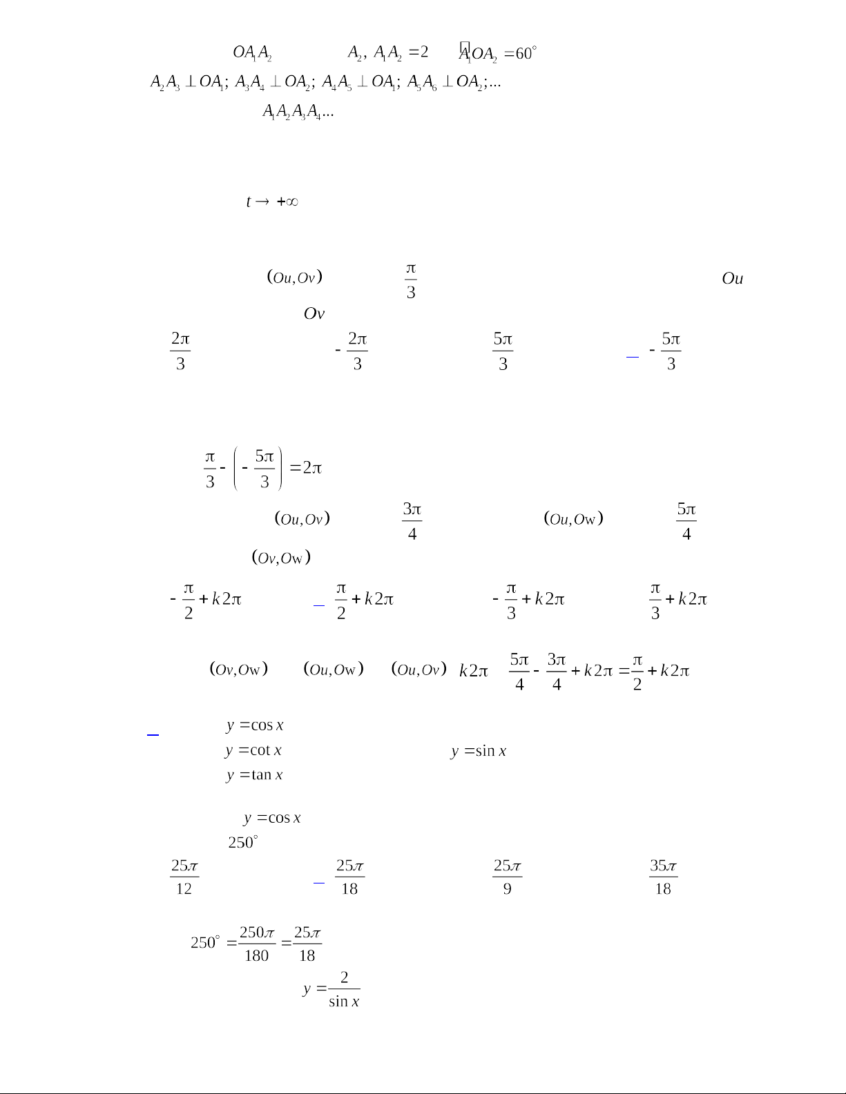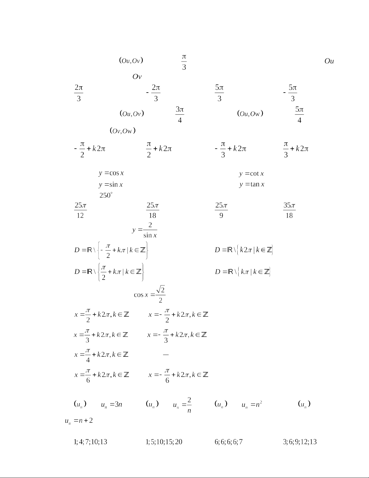 Câu 1: Cho góc lượng giác có số đo là . Các góc lượng giác sau đây có cùng tia đầu ,