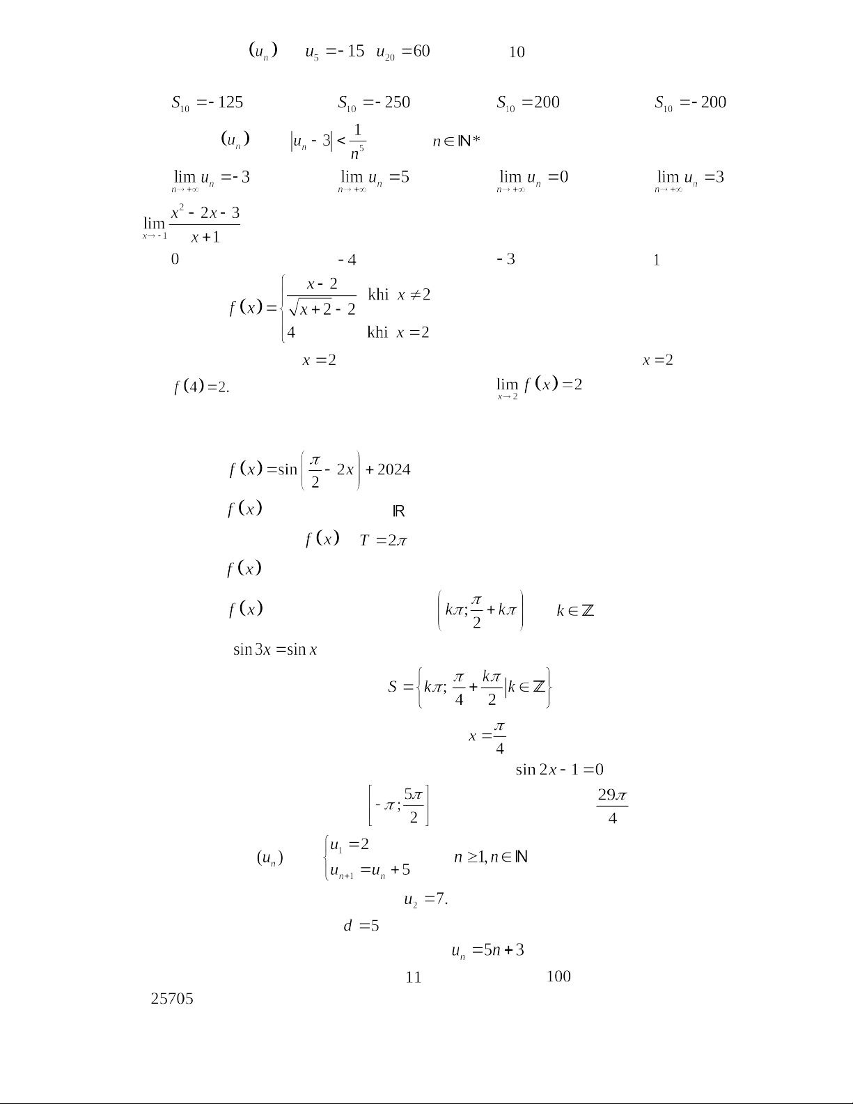 Câu 8: Dãy số nào trong các dãy số dưới đây là một cấp số cộng?