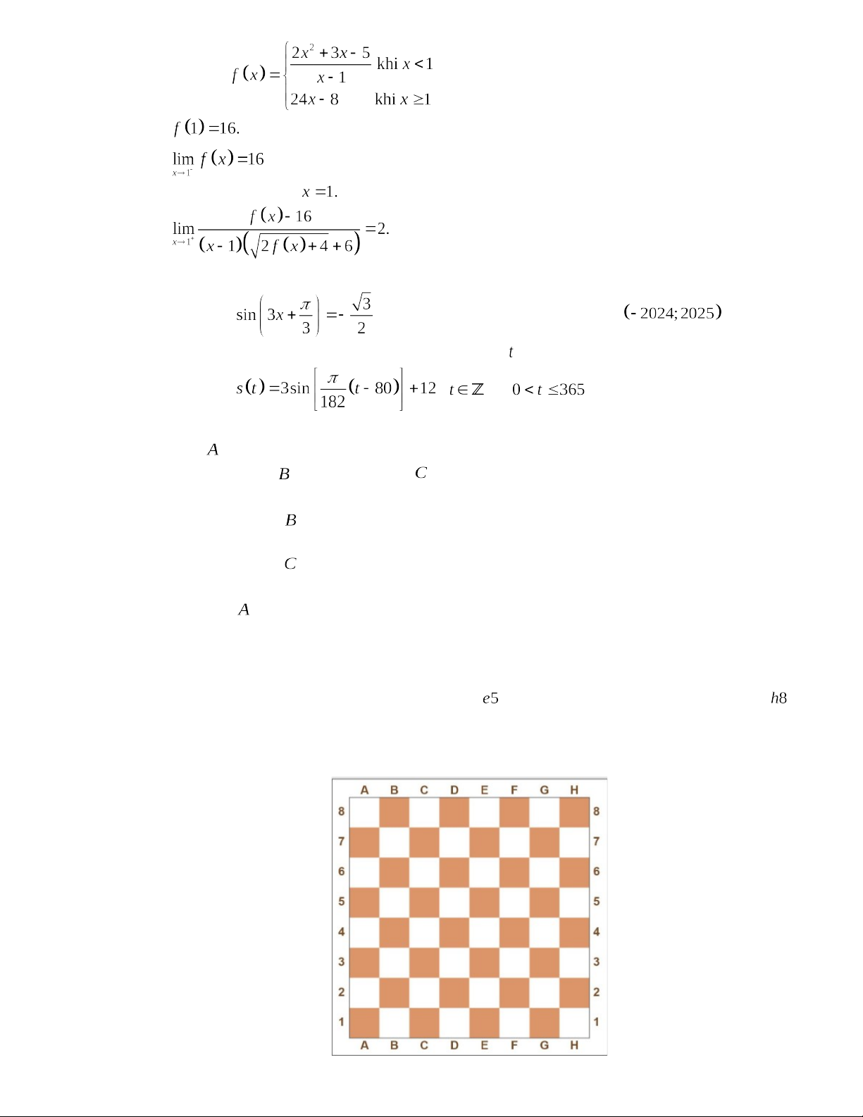 Câu 20: Trên một bàn cờ vua như hình. Các quân cờ Tốt, Mã, Tịnh, Xe, Hậu được tính điểm lần lượt là: