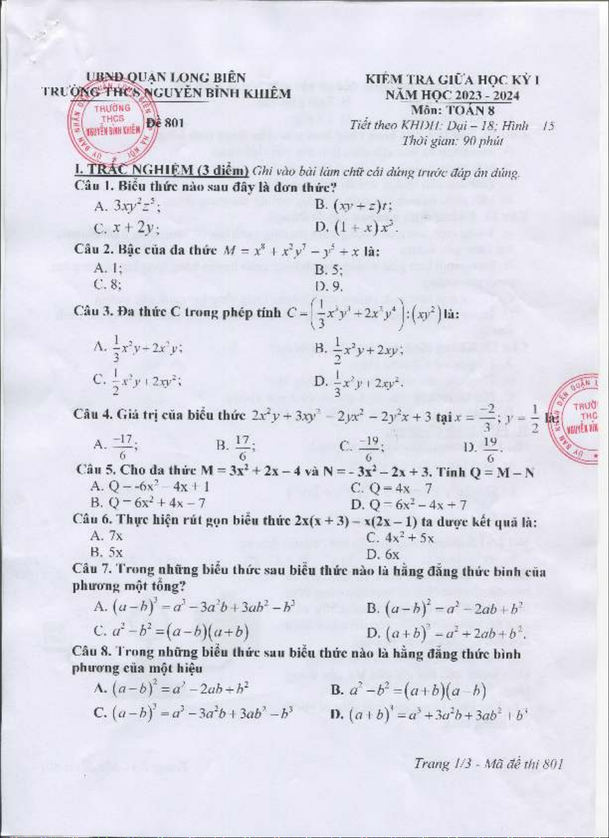 Bai 2. (1,5 di6m) Ph含n tich da th心c thanh nh含n請: