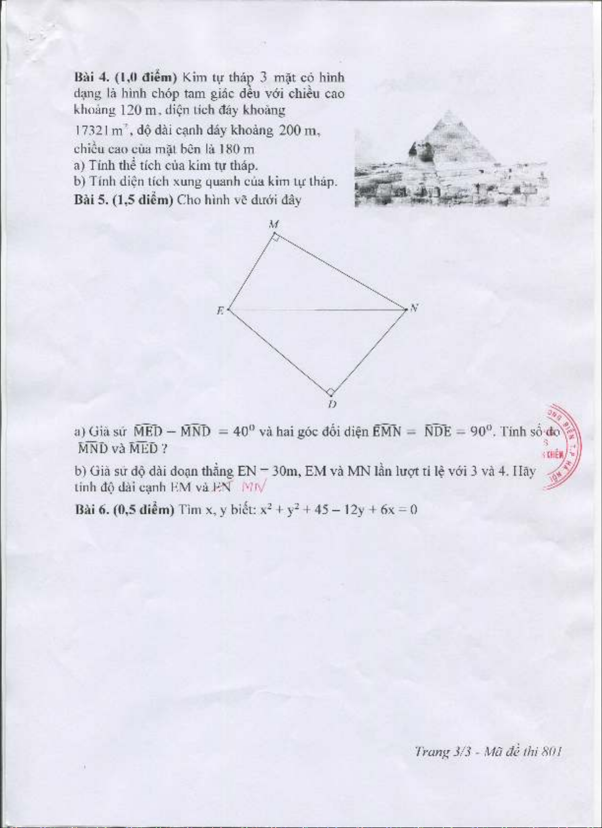 Bai 4. (1,O di6m) Kim ttr th細3 m毎t c6 hinh