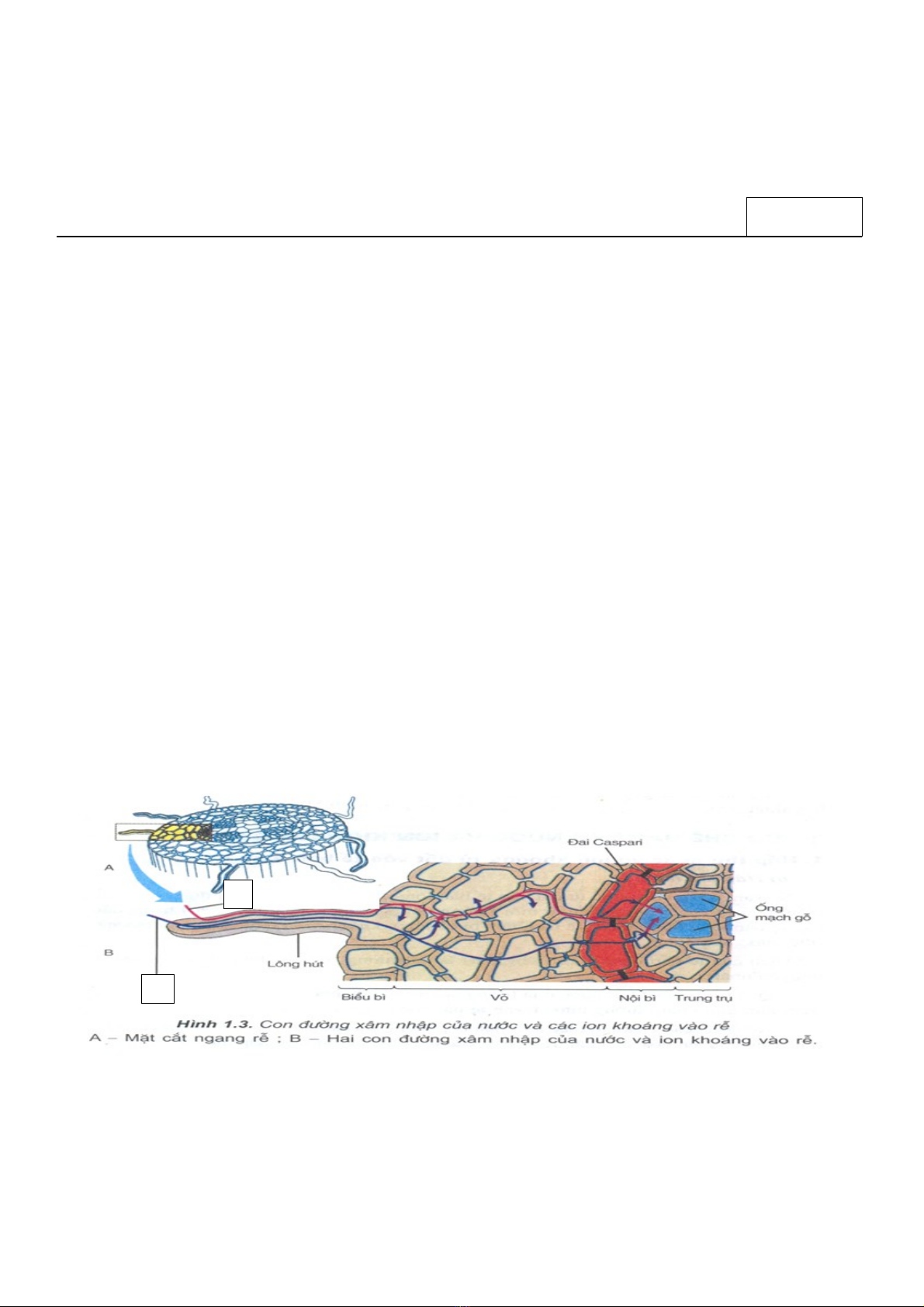 Câu 7: Hình dưới đây mô tả hai con đường xâm nhập của nước và ion khoáng từ biểu bì vào mạch
