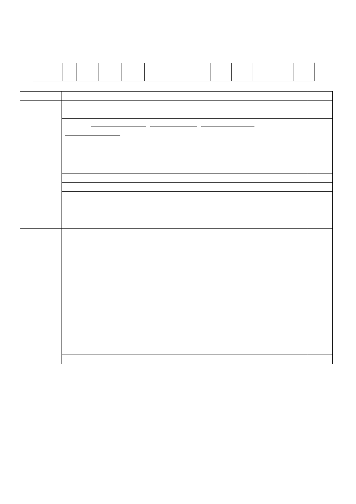 I. Phần trắc nghiệm (3 điểm) Chọn đáp án đúng nhất (từ câu 1 đến câu 12) và điền vào bảng dưới đây: