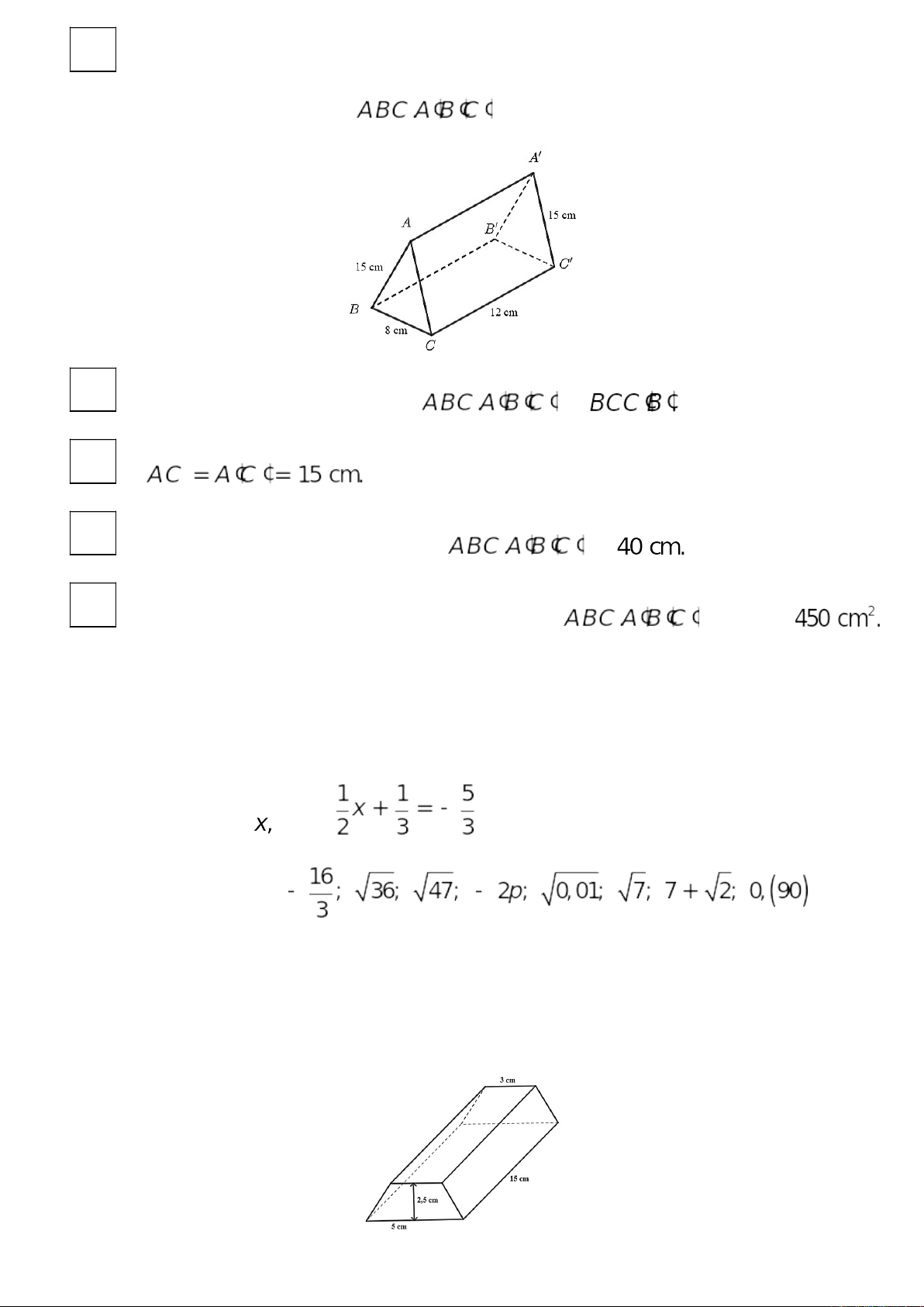 Tính th tích hình lăng tr trên (đ n v : cmể ụ ơ ị 3).