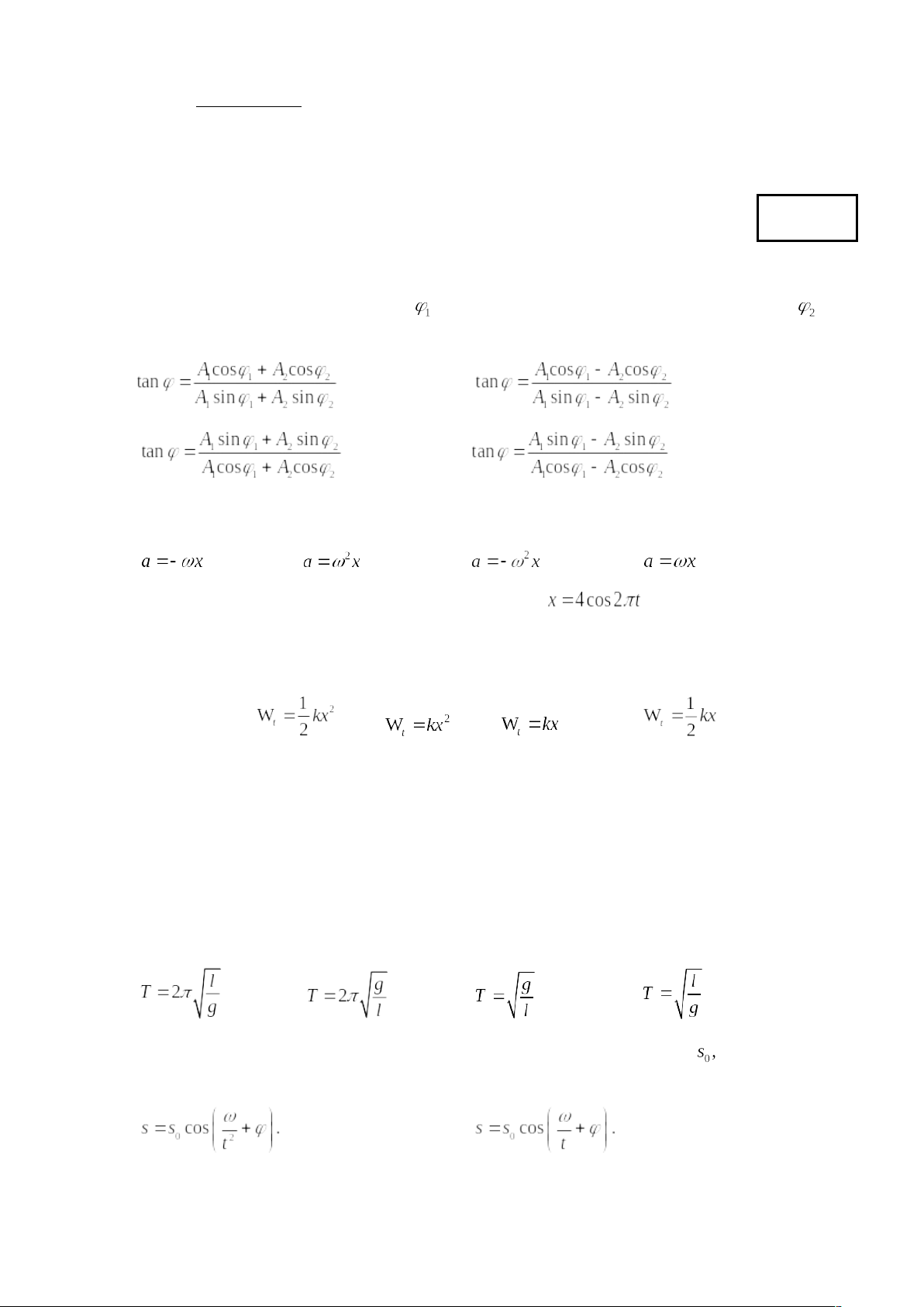 Câu 1: Dao động của một vật là tổng hợp của hai dao động điều hòa cùng phương, cùng tần số. Dao