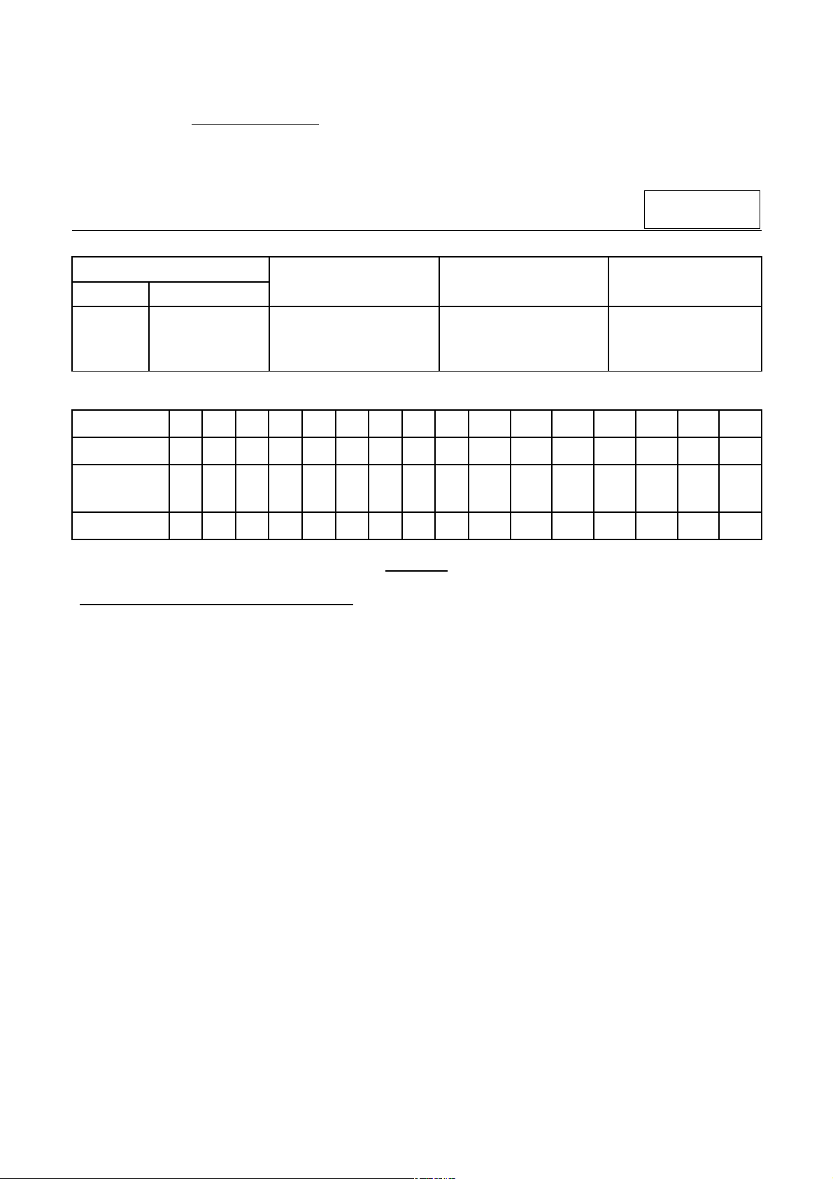 HỌC SINH GHI ĐÁP ÁN PHẦN TRẮC NGHIỆM VÀO Ô DƯỚI ĐÂY