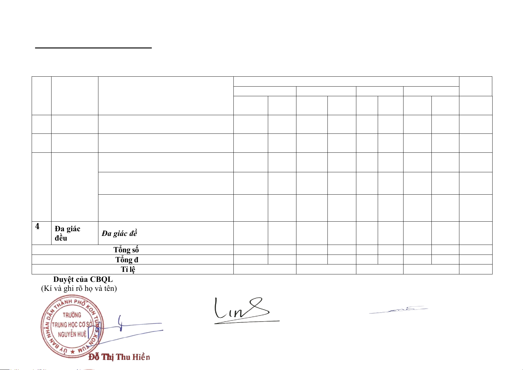 Duyệt của CBQL Duyệt của TTCM Giáo viên lập ma trận