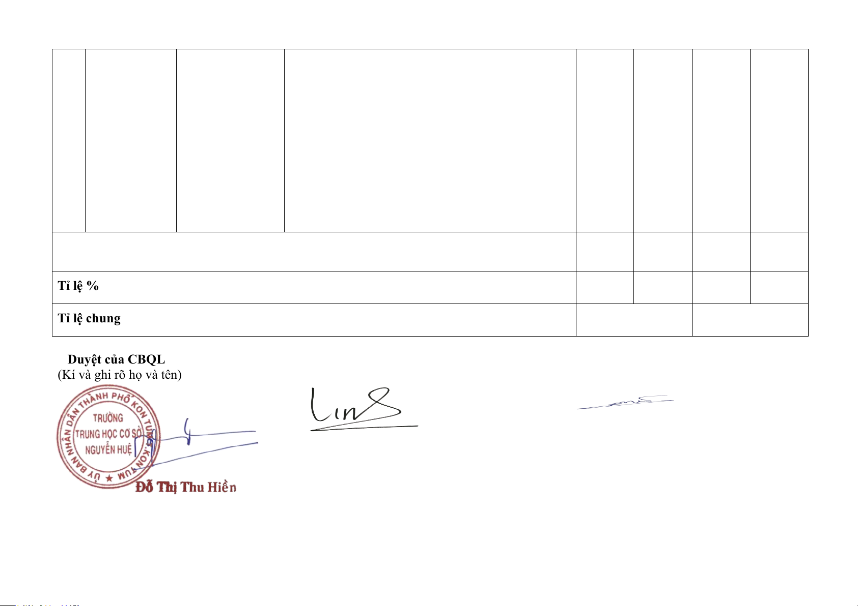 Duyệt của CBQL Duyệt của TTCM Giáo viên lập bảng