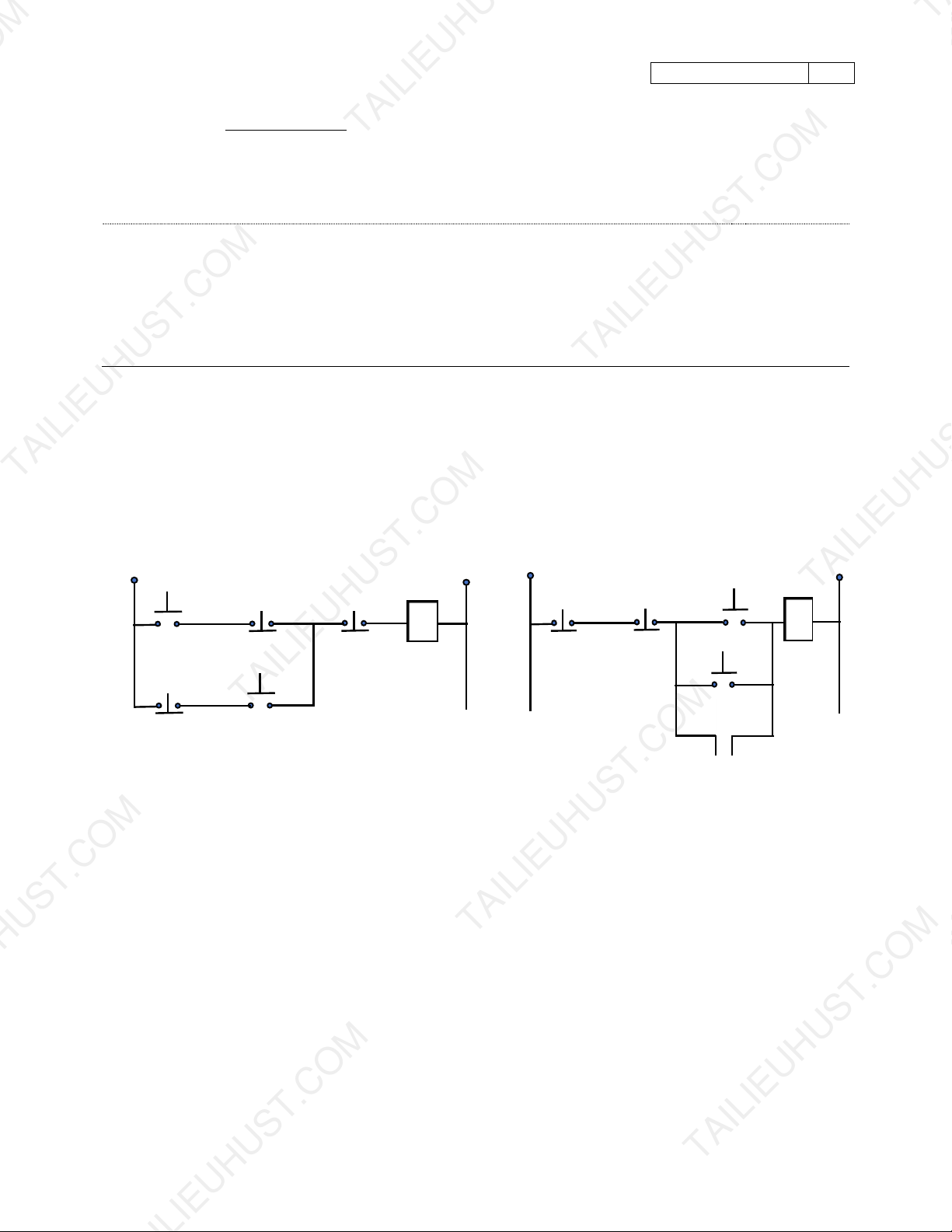 Câu 2. (2 điểm). Tổ hợp hàm logic từ mạch rơ le dưới dây