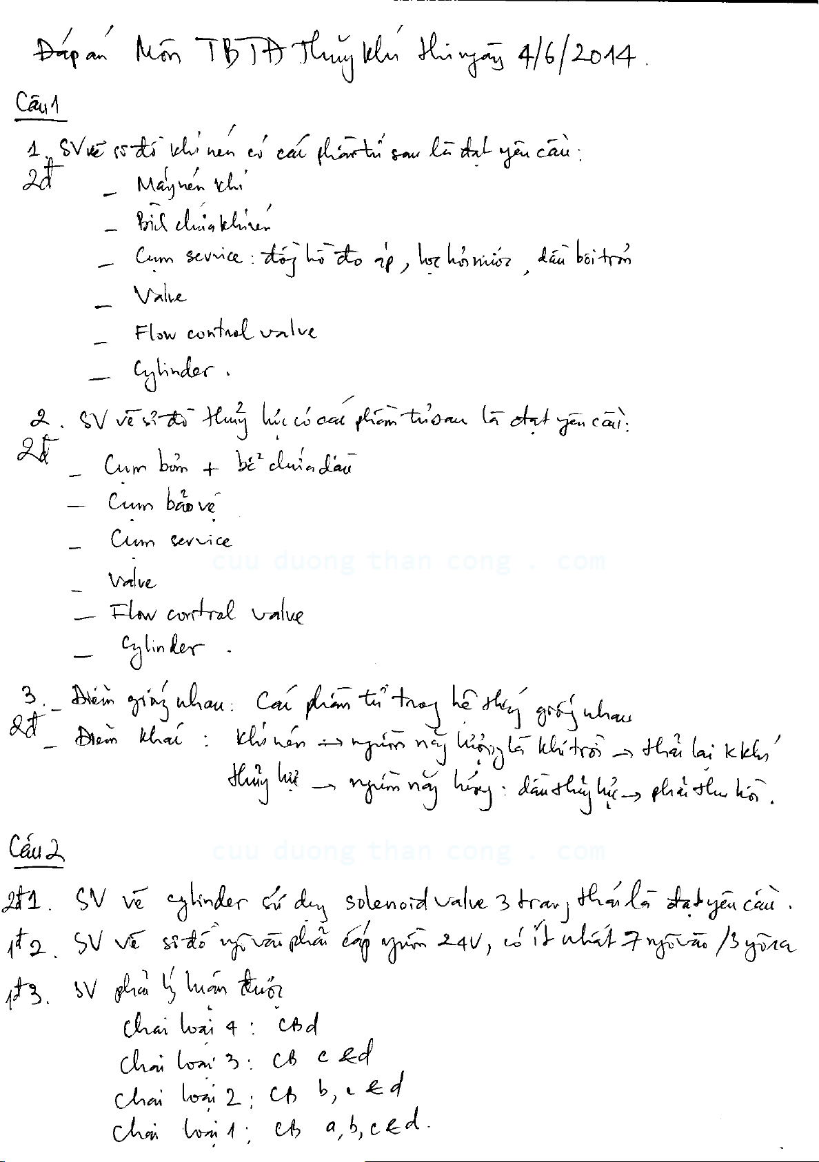 Đề thi Hệ thống thủy động thủy khí giúp cho các bạn sinh viên nắm bắt được cấu trúc đề thi, dạng đề thi chính để có kế hoạch ôn thi một cách tốt hơn. Tài liệu hữu ích cho các các bạn sinh viên đang theo học môn Hệ thống thủy động thủy khí và những ai quan tâm đến môn học này dùng làm tài liệu tham khảo.