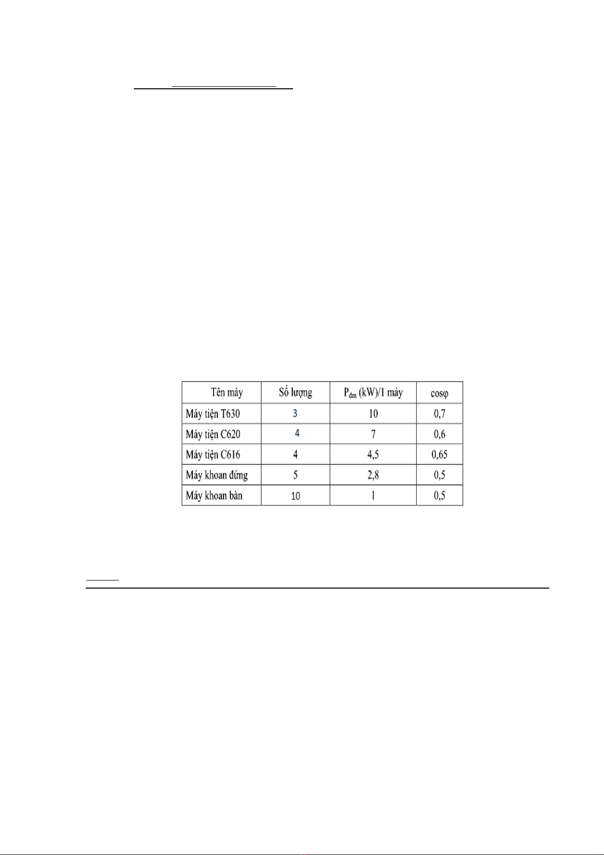 xác định phụ tải tính toán cho một phân xưởng cơ khí với các thông