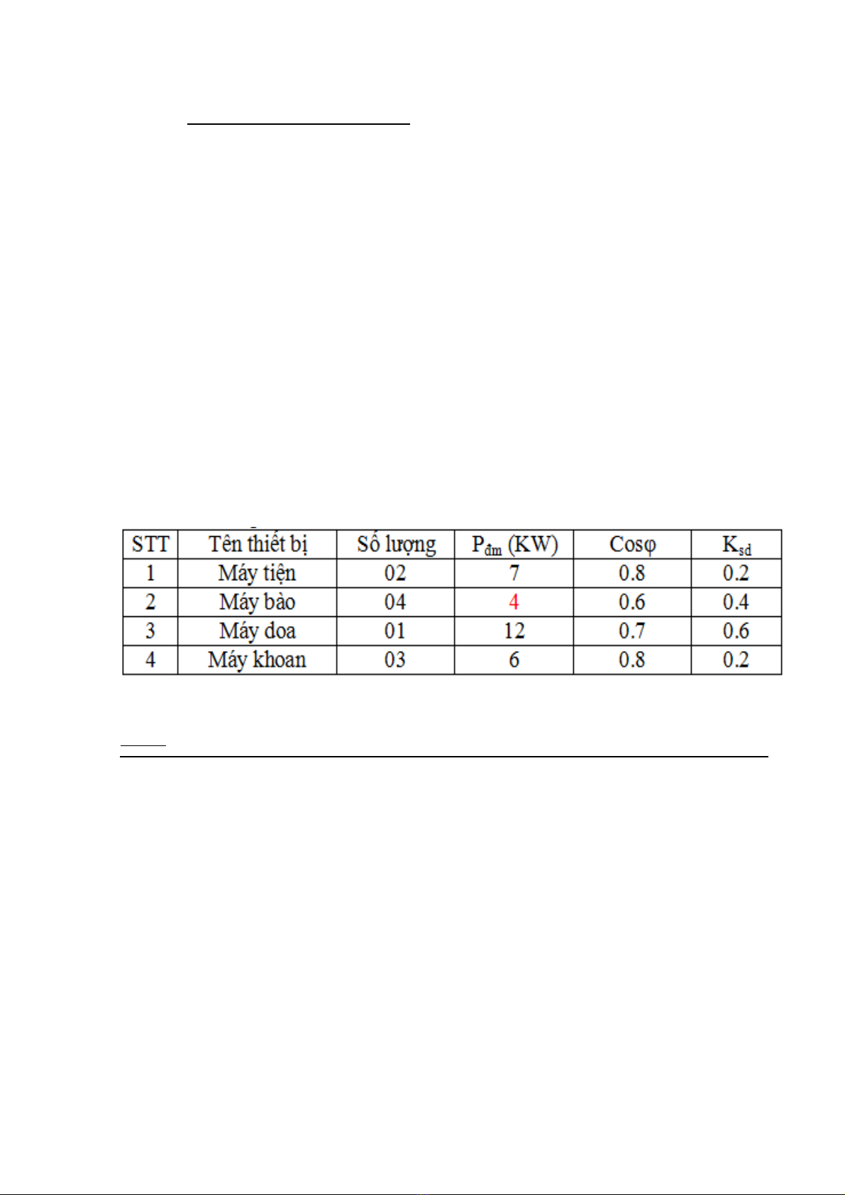 - Phụ tải tính toán của nhóm thiết bị lần lượt là: