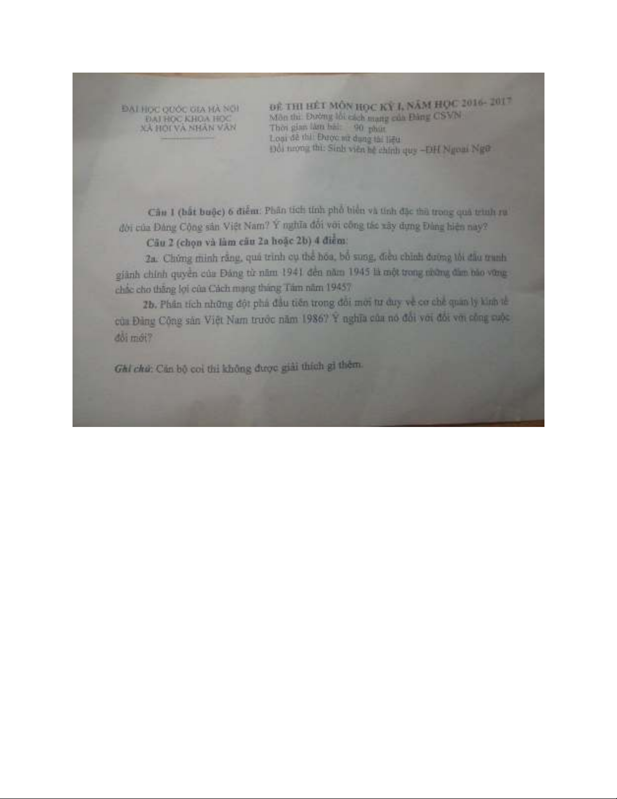 Đề thi hết môn học kỳ I năm học 2016-2017 môn Đường lối cách mạng của Đảng CSVN - ĐH Ngoại ngữ