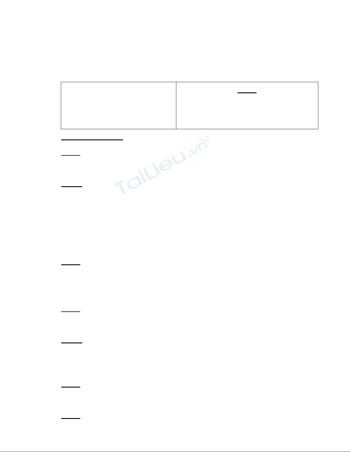 I. TRẮC NGHIỆM Mỗi câu đúng 0,25đ